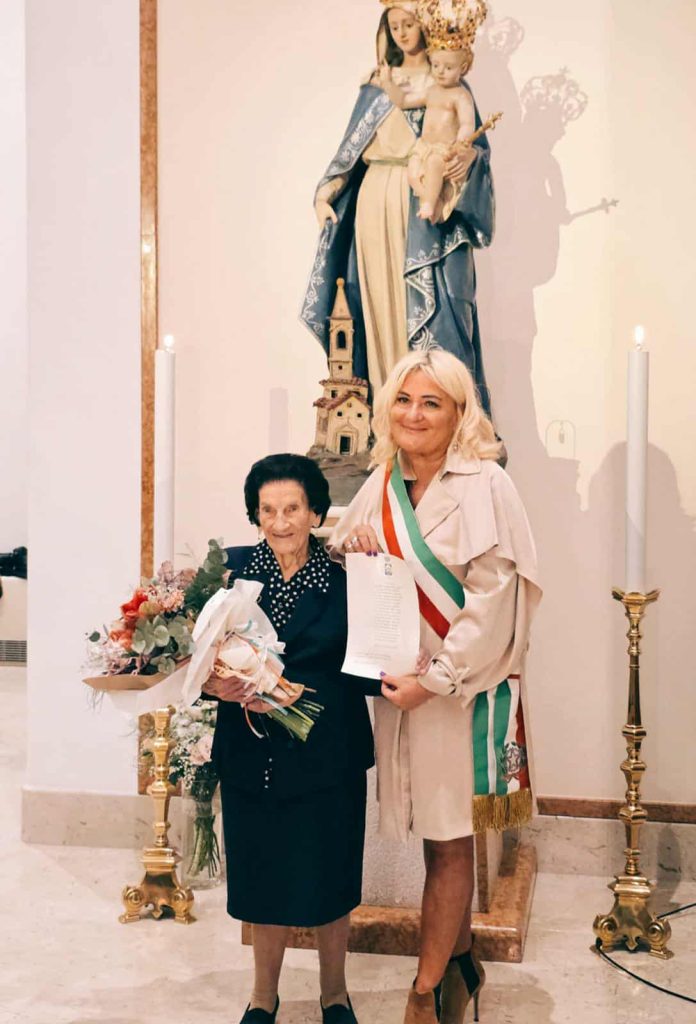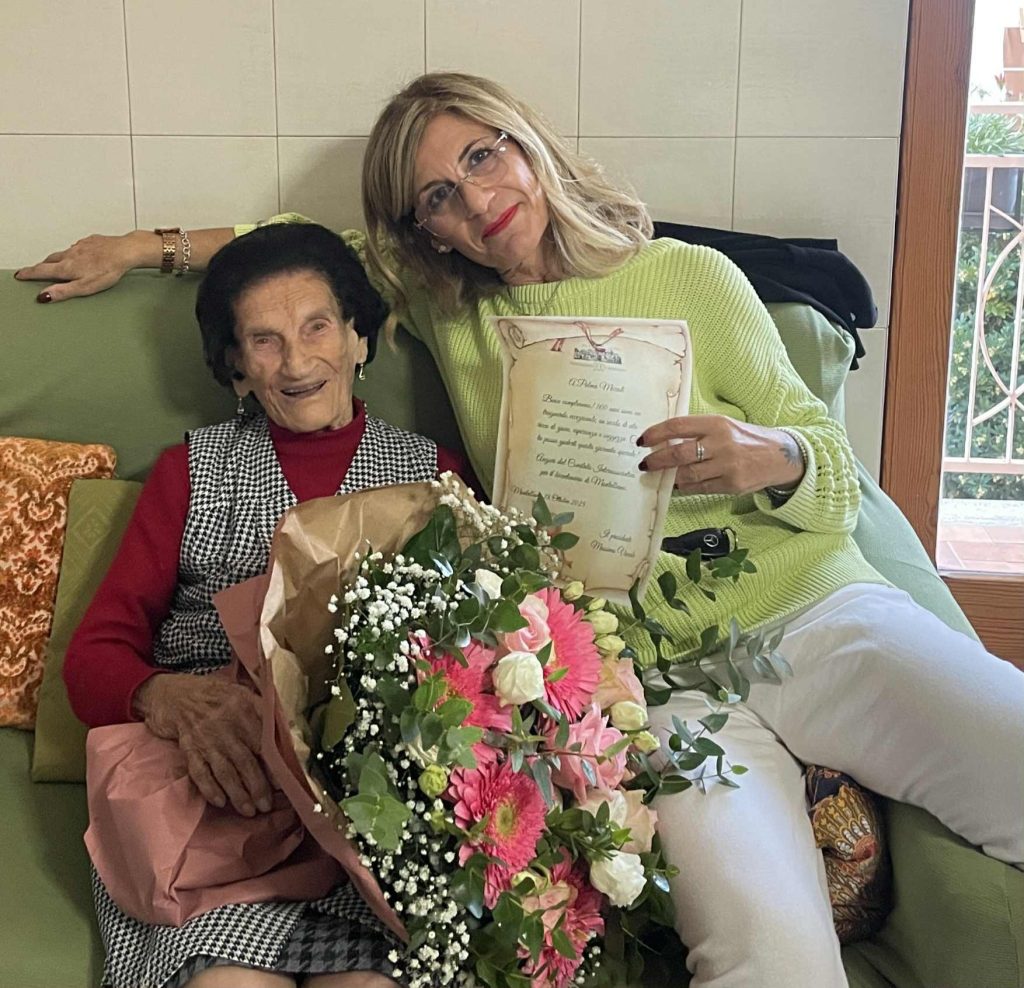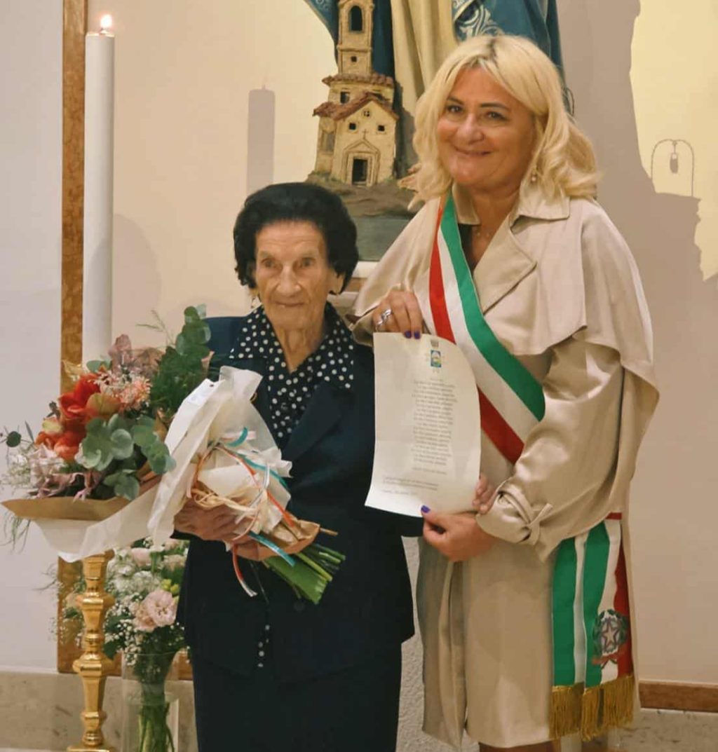 Palma Miccoli nel corso della giornata ha ricevuto anche gli auguri, con pergamena e fascio di fiori, da parte del Comitato interassociativo per il bicentenario di Montalbano.