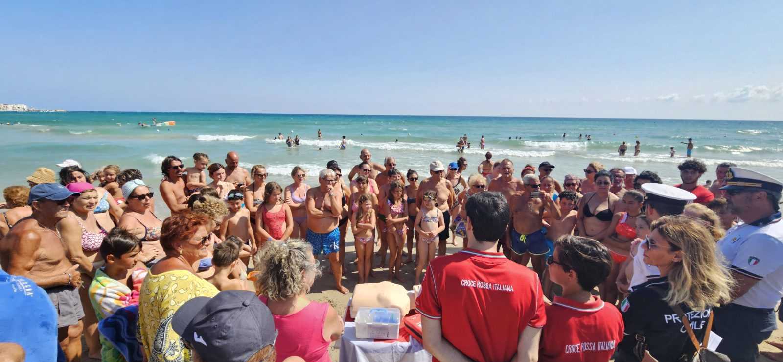 I volontari della Croce Rossa Italiana – comitato di Fasano, rappresentanti da Roberto Posado, hanno mostrato le manovre di primo soccorso a seguito di annegamento e di malore sulla spiaggia.