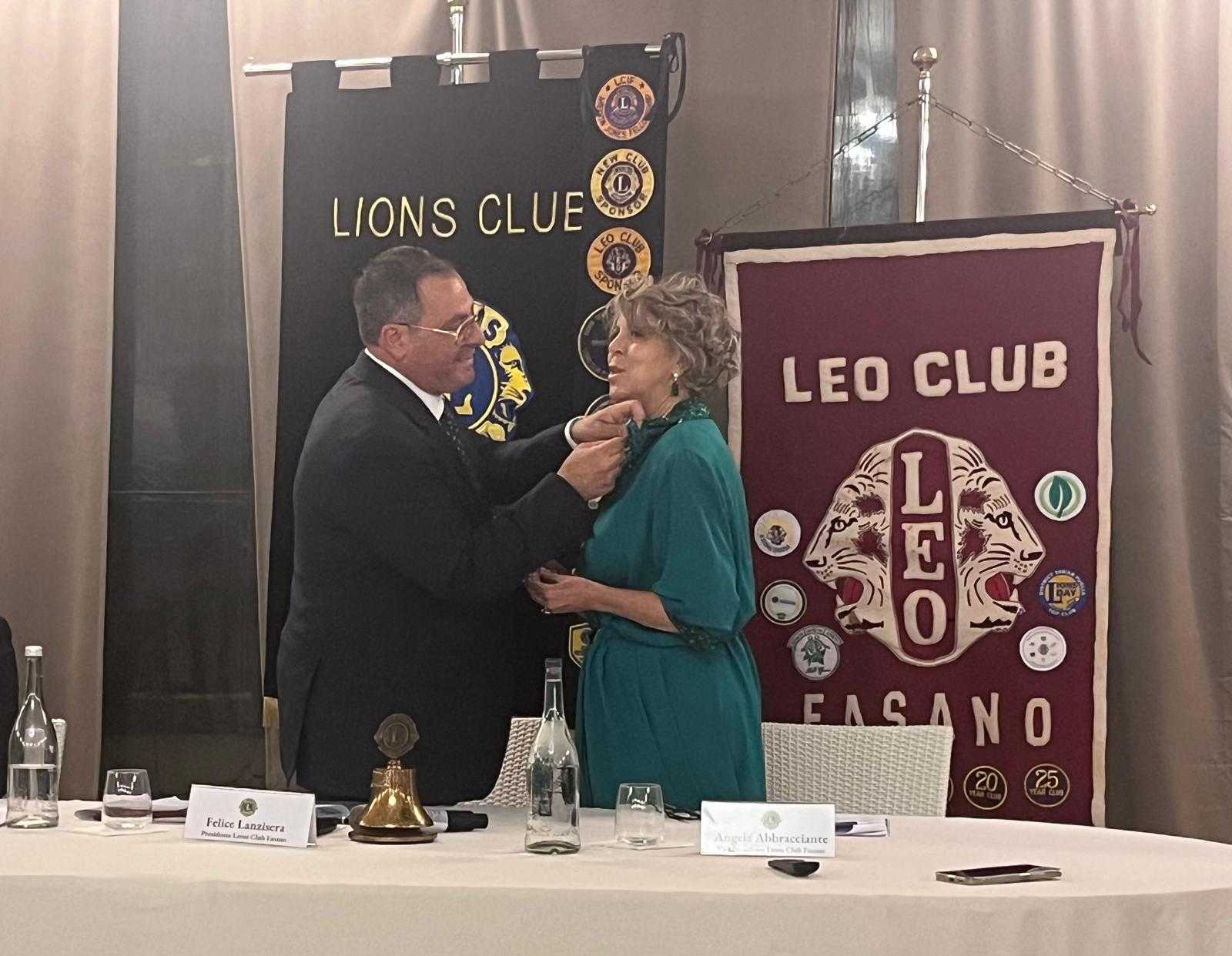 Come sempre denso di emozione il fatidico passaggio di consegne, con Lanzisera che ha appuntato il distintivo di presidente del Lions Club Fasano ad Angela Abbracciante.