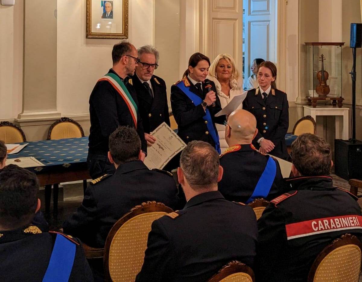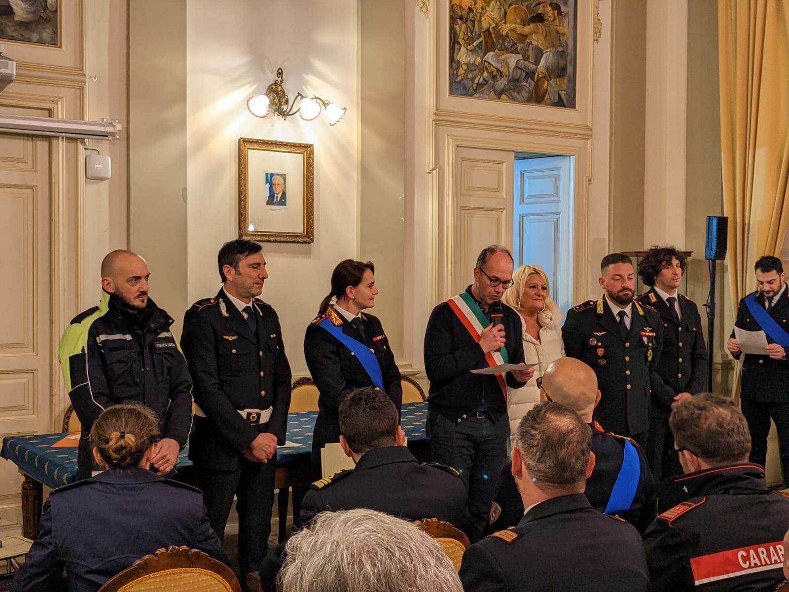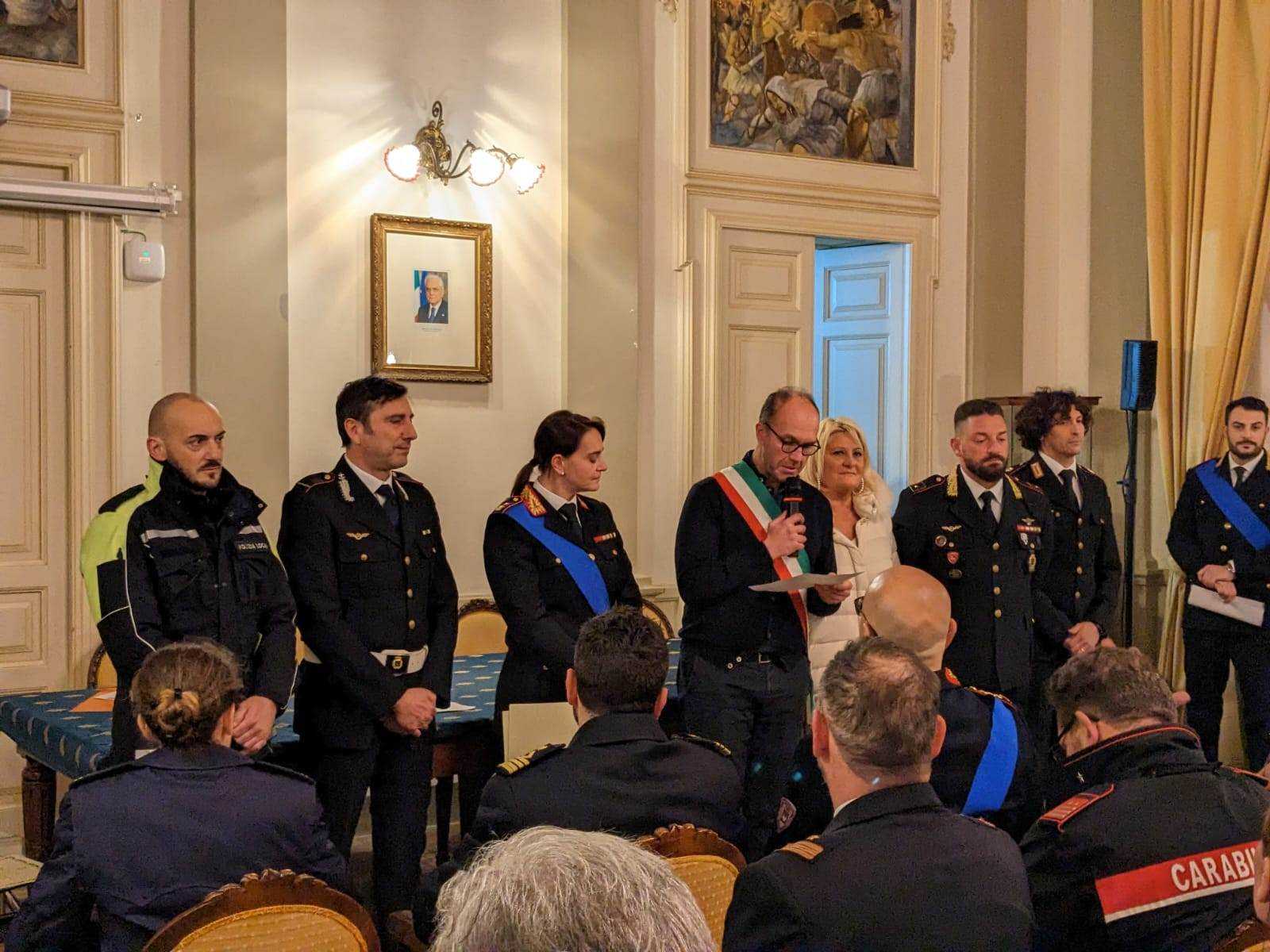 Un encomio del sindaco, invece, è stato consegnato al vice ispettore Tommaso Petrella, al vice sovrintendente Domenico De Giosa, all’agente Daniele De Santis e all’agente Vito Argese, per essersi distinti il 9 agosto 2022 “in un intervento di polizia stradale che si concludeva con il deferimento all’autorità giudiziaria di un soggetto pluripregiudicato resosi responsabile dei reati di porto abusivo di armi, resistenza, oltraggio, violenza e minaccia a pubblico ufficiale”.