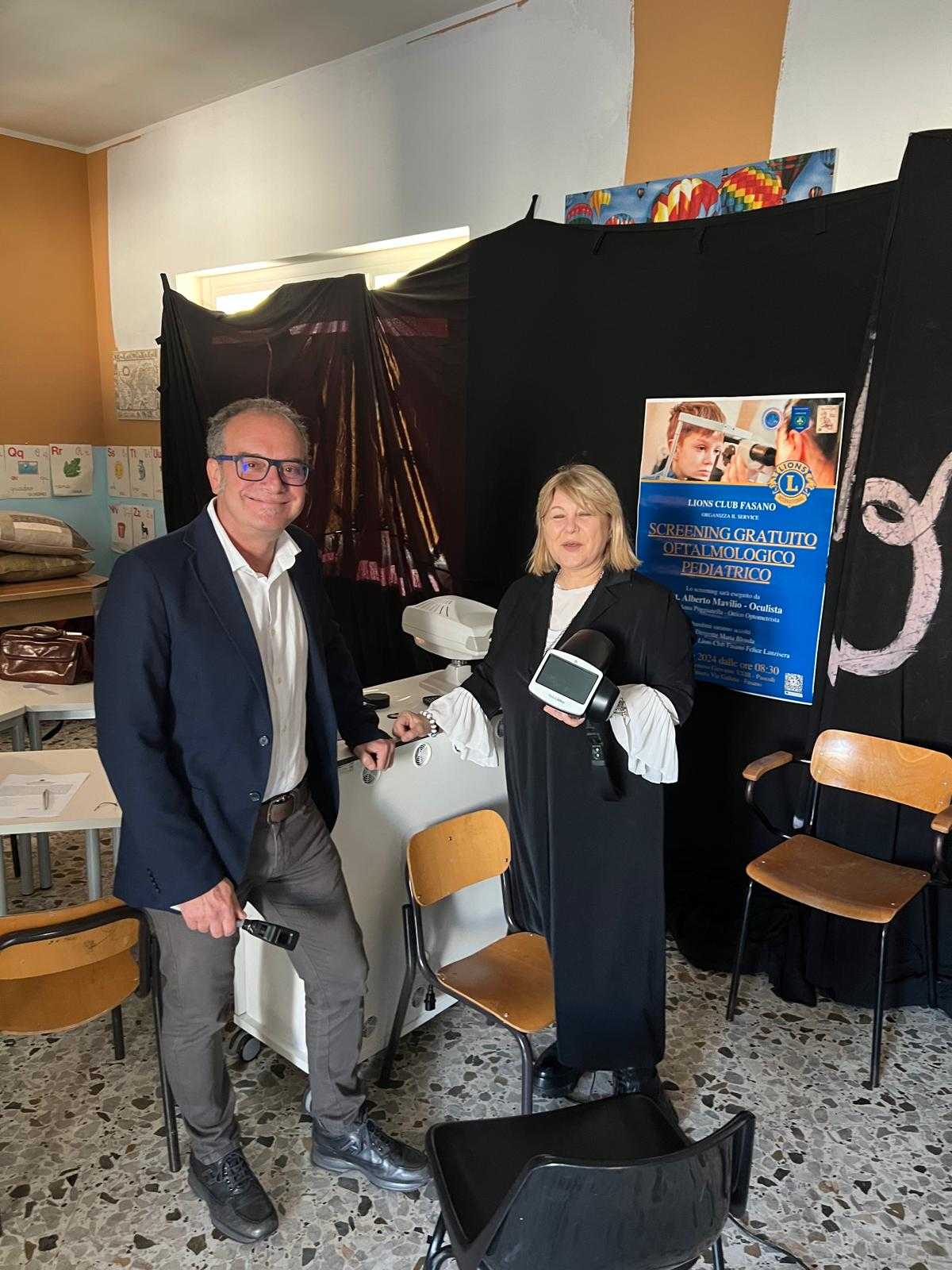 Il controllo visivo è stato effettuato presso l’istituto scolastico di via Galizia dal dott. Alberto Mavilio, oculista, con l’ausilio di Anna Poggianella, ottico optometrista, socia del Lions Club Ostuni Host.