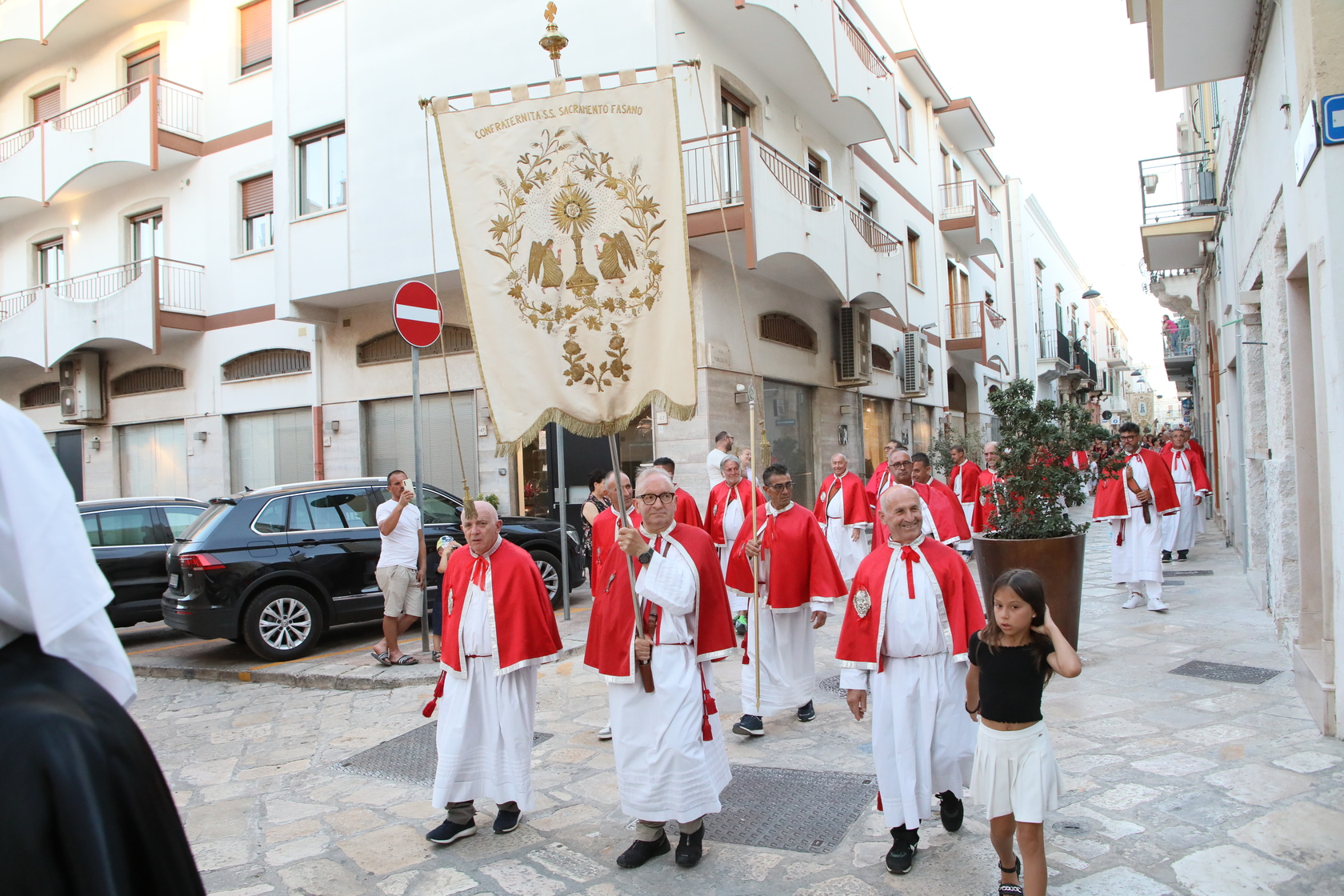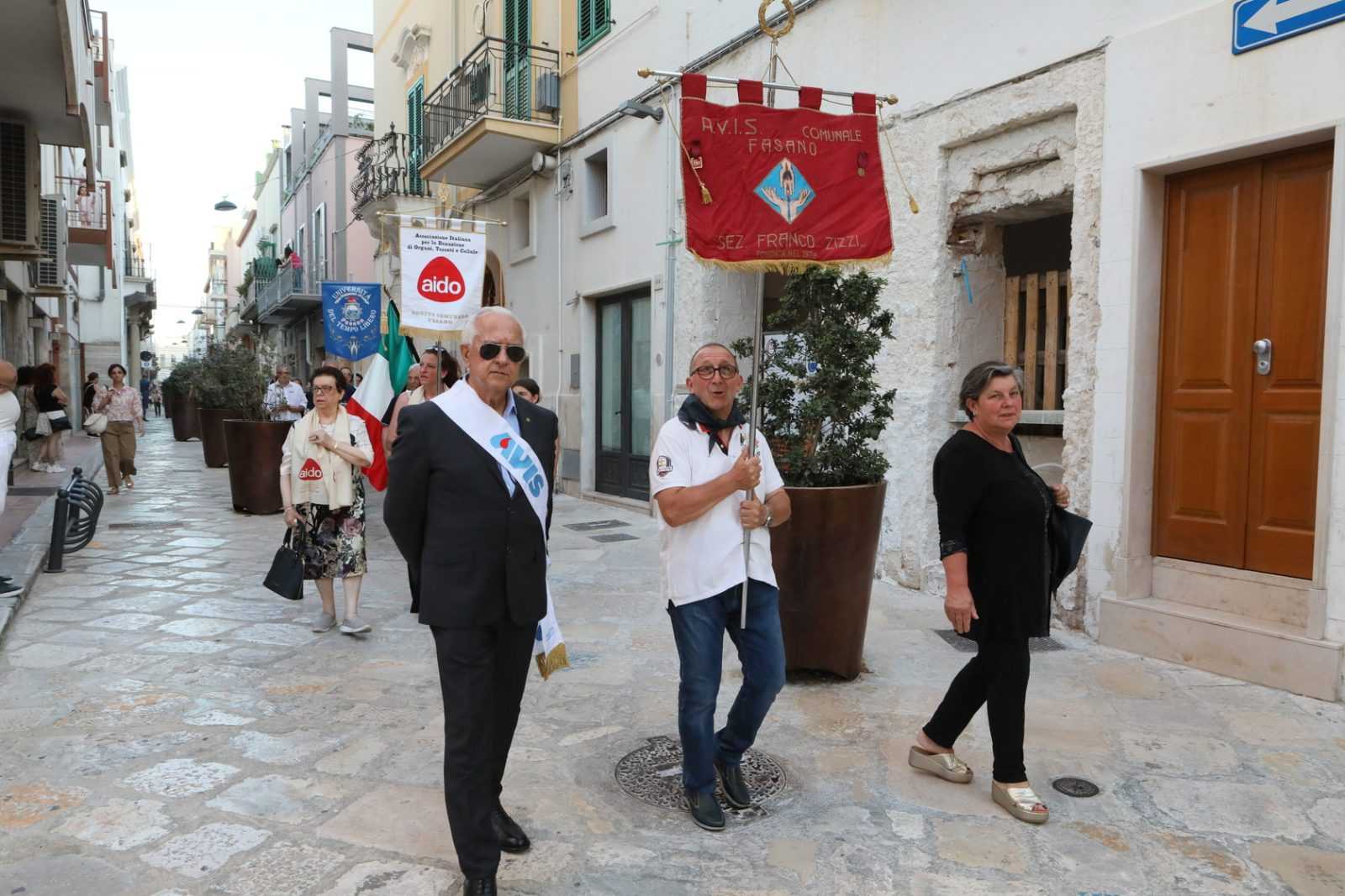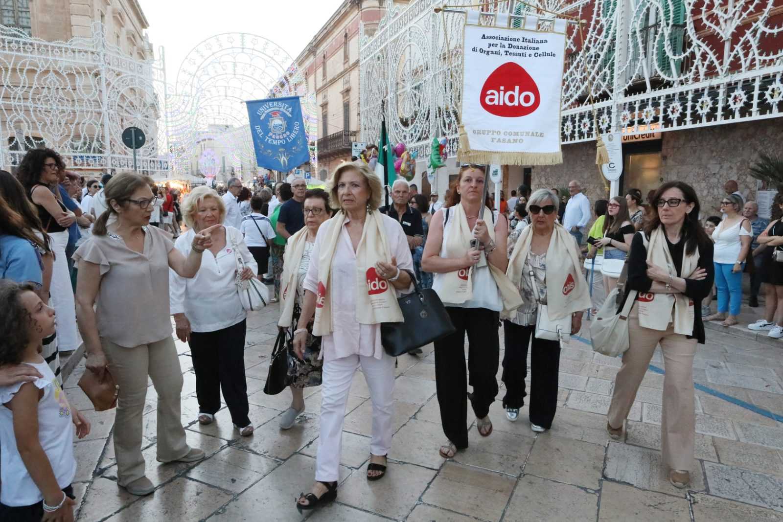 La processione ha visto la partecipazione del clero, delle autorità civili e militari, dell’Ordine Francescano Secolare, delle confraternite e delle numerose associazioni cittadine quali Aido, Avis, Università del Tempo Libero, ANMI, Ass. Fra Lavoratori della Pesca “F. De Leonardis”, Gruppo Scout, Protezione Civile, Azione Cattolica e tante altre realtà che operano sul territorio. Questo variegato corteo ha accompagnato le sacre immagini dei Santi Patroni per le vie di Fasano, trasformando la città in un grande palcoscenico di spiritualità e tradizione.