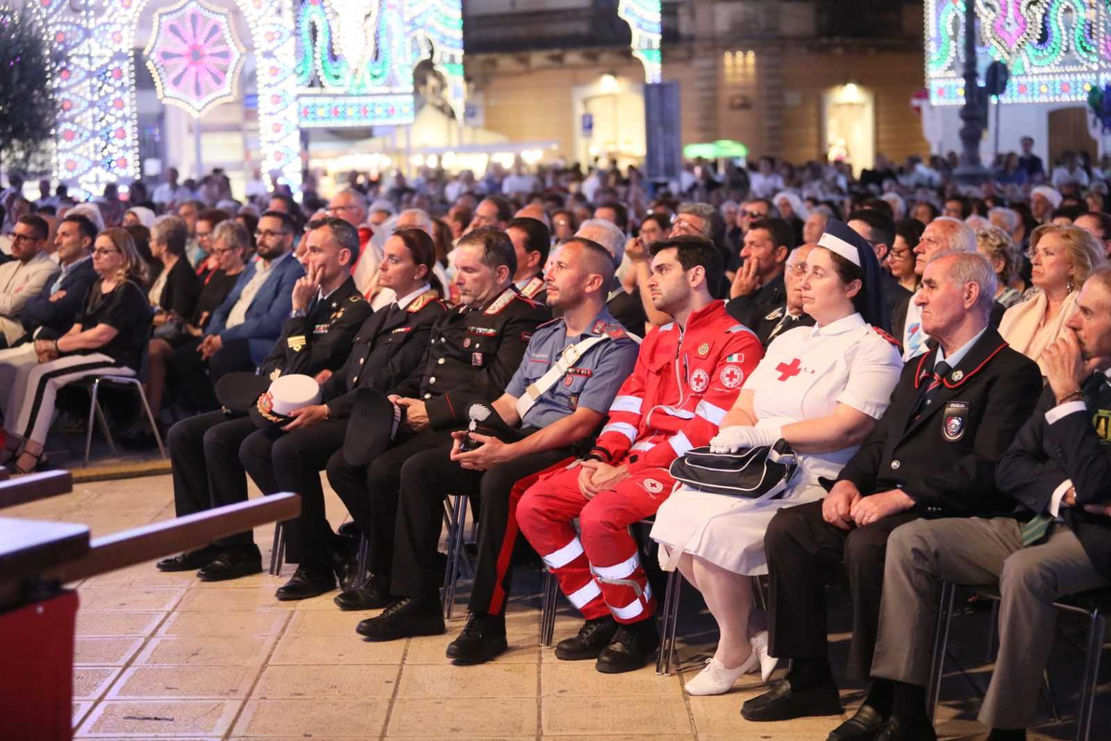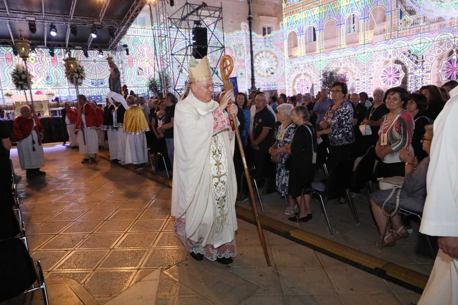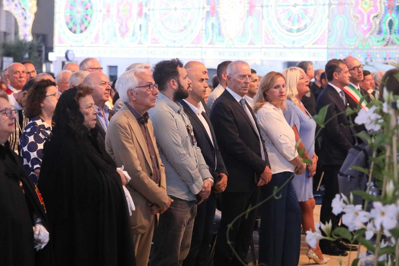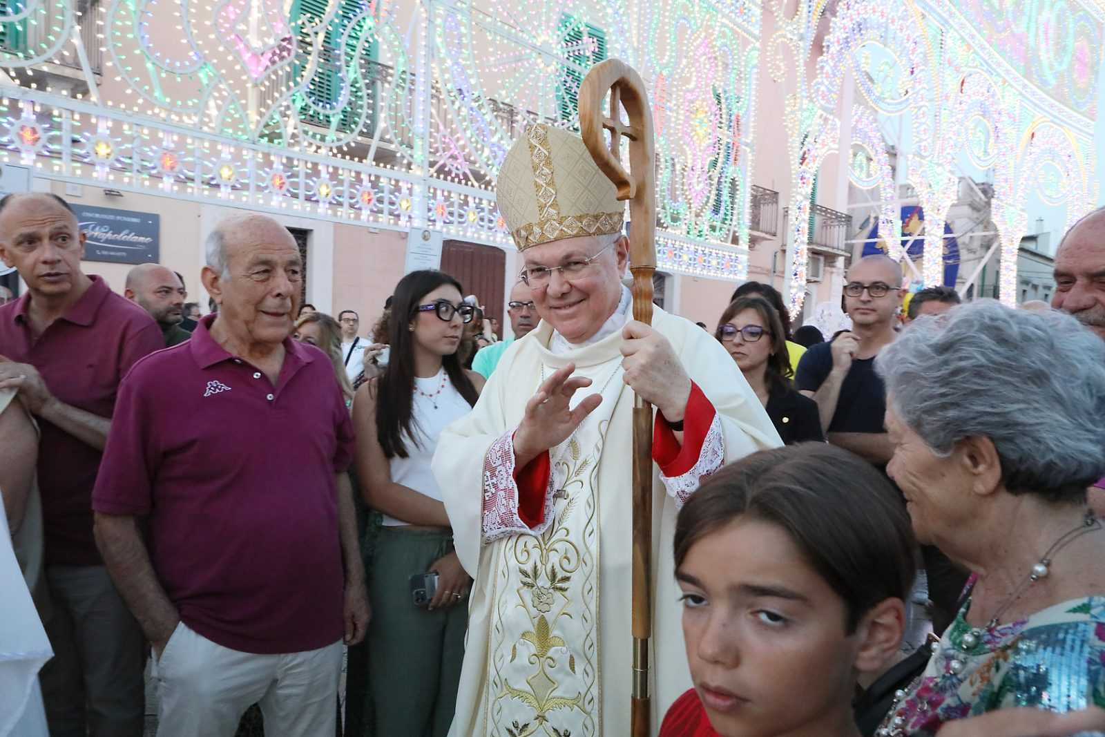 Il percorso della processione, seguito con grande partecipazione dai fedeli, è culminato in Piazza Ciaia, dove si è svolta la solenne concelebrazione eucaristica. La celebrazione è stata presieduta da Mons. Giuseppe Favale, Vescovo della Diocesi di Conversano Monopoli. La piazza, gremita di devoti, ha risuonato delle parole del Vescovo che, alla vigilia della festività dedicata alla nascita di San Giovanni, ha sottolineato l’importanza del santo come simbolo di rinnovamento e guida spirituale. Mons. Favale ha invitato i presenti a seguire l’esempio di San Giovanni, incoraggiandoli a percorrere una strada di rinnovamento interiore e comunitario. Le sue parole hanno risuonato con forza tra i fedeli, rafforzando il legame della comunità con i propri Santi Patroni e rinnovando lo spirito di fede che caratterizza la città di Fasano.
