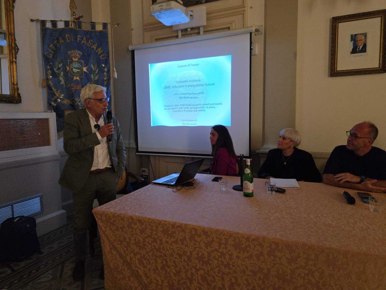 Durante la giornata, sono stati analizzate le cause del fenomeno, le soluzioni già in atto e le future strategie per proteggere il litorale locale. I relatori che hanno preso parte alla discussione sono stati: Francesco Zaccaria, Sindaco della Città di Fasano, Loredana Legrottaglie, Consigliere comunale con delega allo Sviluppo Sostenibile della Fascia Costiera, Maria Cornacchia, Dirigente del Settore Patrimonio e Demanio, Michele Lastilla, Direttore del Parco delle Dune Costiere da Torre San Leonardo a Torre Canne e Guido Beltrami, Dottore Agronomo con specializzazione in Maricoltura, esperto in rinaturalizzazione e protezione della biodiversità.