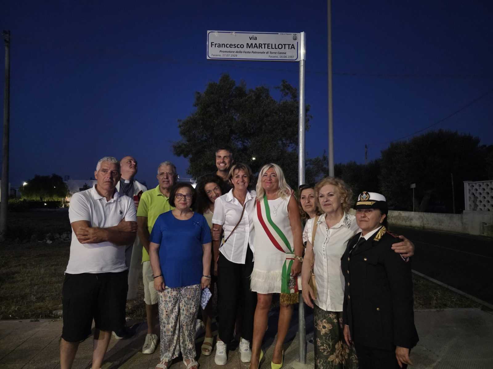 Le personalità a cui sono state intitolate le strade giovedì 26 giugno sono state: Francesca “donna Checchella” De Leonardis, stimata Insegnante (Fasano, 8 settembre 1903 – 5 maggio 1978); Francesco Martellotta, figura chiave nella promozione della Festa Patronale (Fasano, 27 luglio 1929 – 14 aprile 1997); Sergio Furno, fondatore del rinomato camping “Le Dune” (Ceres, 31 luglio 1932 – 25 settembre 2001); Stefano Convertini, ricordato come uno straordinario altruista e attento ascoltatore (Cisternino, 14 agosto 1923 – 4 marzo 1992); Giacomo Rosato, apprezzato Maestro Artigiano del legno (Fasano, 14 luglio 1910 – 19 aprile 1969).