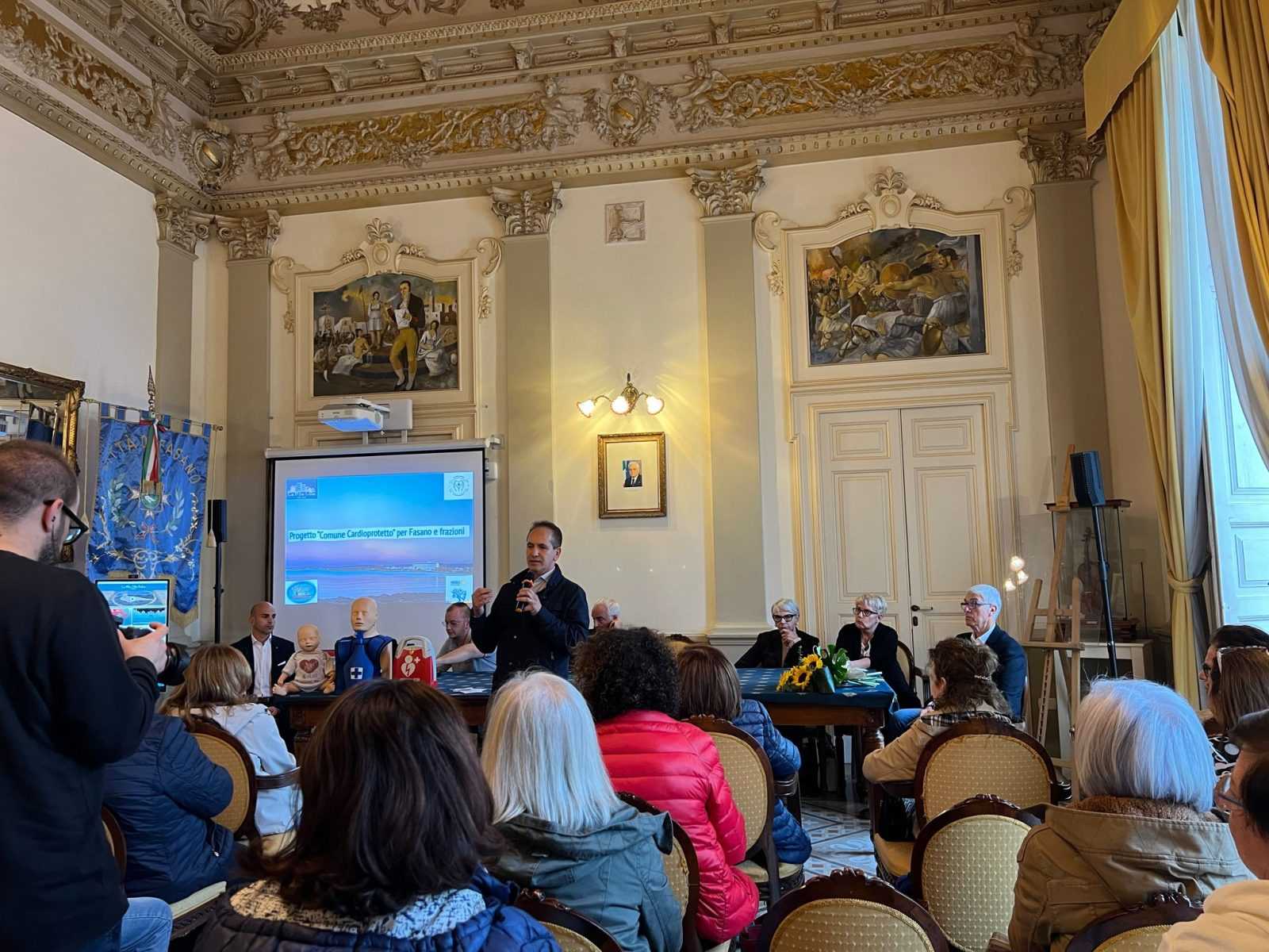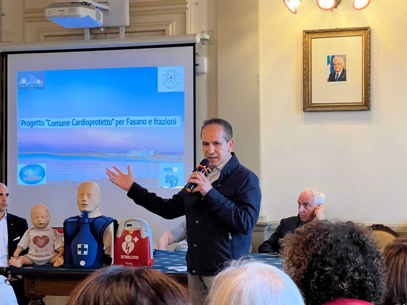 FASANO – Si è svolta ieri (18 aprile), nella sala di rappresentanza di Palazzo di Città, la conferenza stampa di presentazione del progetto “Fasano comune cardioprotetto”, moderata dal consigliere comunale Giuseppe Ventrella. Dopo i saluti del sindaco Francesco Zaccaria, che ha sottolineato l’importanza di rafforzare il legame fra associazioni e volontari nella missione di rendere Fasano un comune cardioprotetto, a prendere la parola è stato Giuseppe Larato, ideatore dell’app.