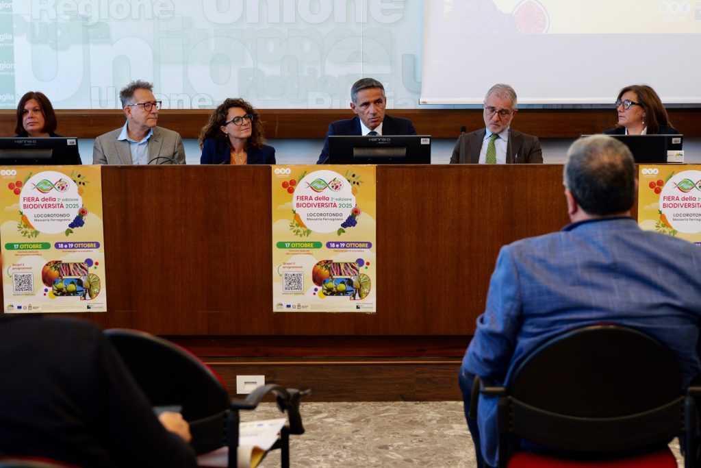 LOCOROTONDO – Si rinnova per il secondo anno, dal 17 al 19 ottobre 2025 a Locorotondo, l’appuntamento dedicato alla biodiversità agraria pugliese. Protagoniste assolute saranno le antiche varietà di piante di interesse agricolo recuperate e custodite nella più importante collezione del Mezzogiorno che ha sede a Masseria Ferragnano. Gli eventi e le attività in programma nella tre giorni della Fiera della Biodiversità sono state presentate dall’assessore all’Agricoltura, Donato Pentassuglia, il dirigente della Sezione Competitività delle filiere agroalimentari della Regione Puglia, Luigi Trotta, la responsabile di Raccordo delle Misure di Formazione, Innovazione e Cooperazione del PSR Puglia 2014/2022, Giovanna D’Alessandro, la responsabile dell’Operazione 10.2.1 del PSR Puglia 2014/2022, dedicata ai progetti per la conservazione e valorizzazione delle risorse genetiche in agricoltura, Cristina Ferulli, e i responsabili scientifici di quattro Progetti integrati sulla biodiversità delle colture arboree (piante da frutto, ulivo e vite) finanziati dal Programma di Sviluppo Rurale della Regione Puglia: Pierfederico La Notte, Cinzia Montemurro e Pasquale Venerito.