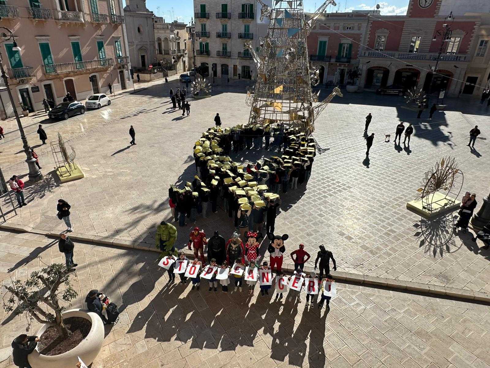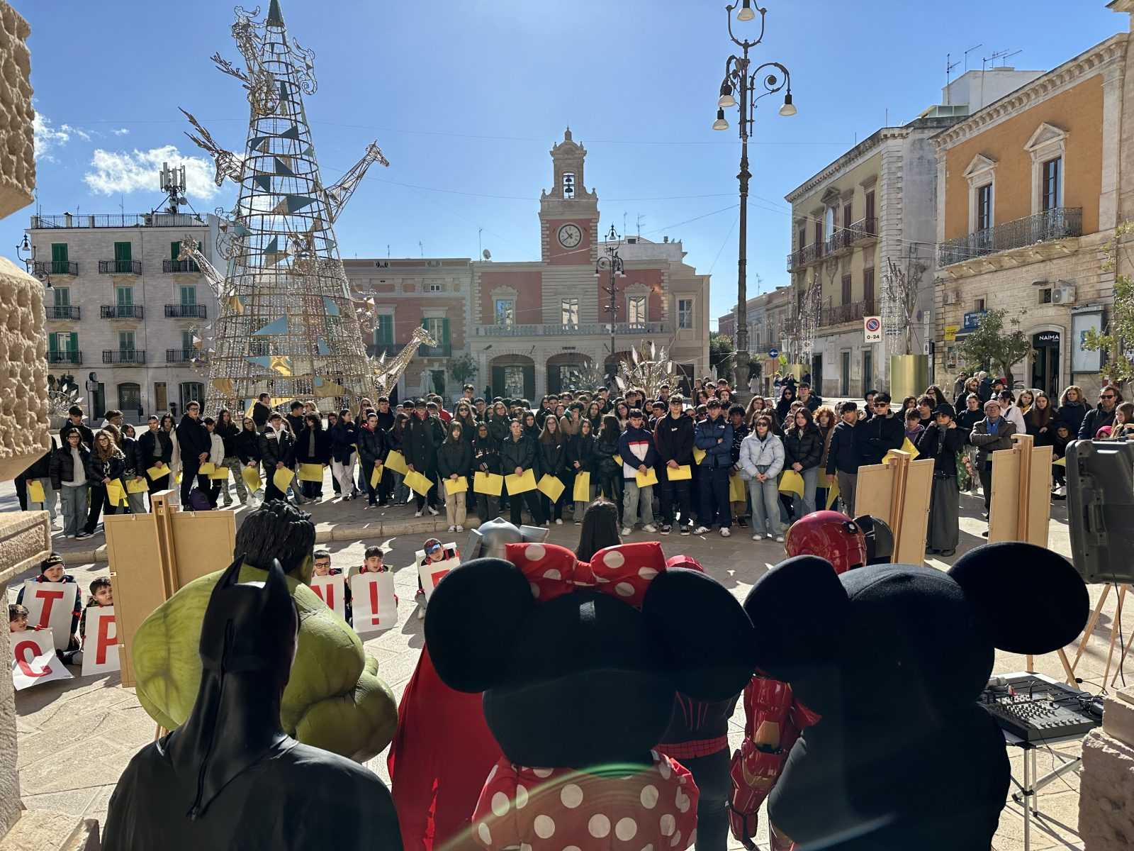 FASANO – Si è svolto questa mattina in piazza Ciaia a Fasano il flashmob promosso dall’associazione “La Banda di Minnie e Topolino” in occasione della Giornata Mondiale della Lotta al Cancro Infantile. Patrocinato dalla Regione Puglia, dal Comune di Fasano e dall’Istituto Tumori di Bari “Giovanni Paolo II”, l’evento ha visto la partecipazione degli alunni delle scuole I.I.S.S. Leonardo da Vinci e II Circolo – Giovanni XIII di Fasano che, accompagnati dai loro docenti, hanno preso parte a questa importante giornata di sensibilizzazione.