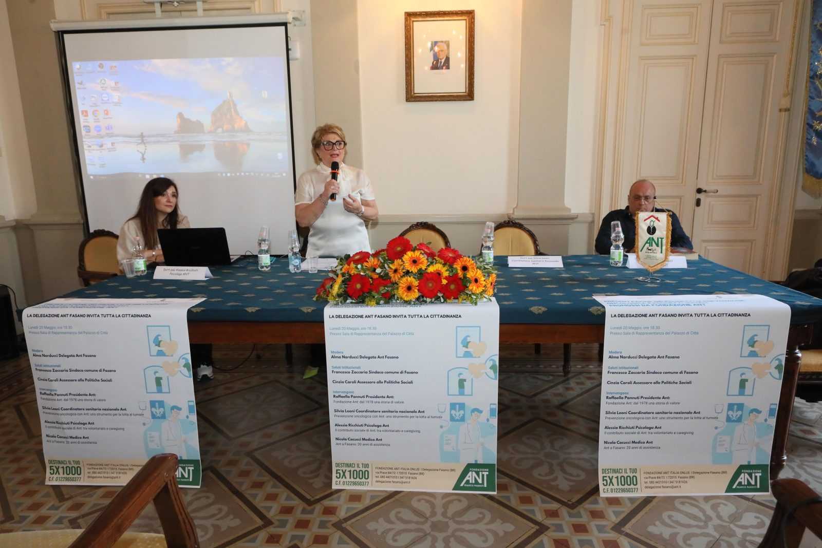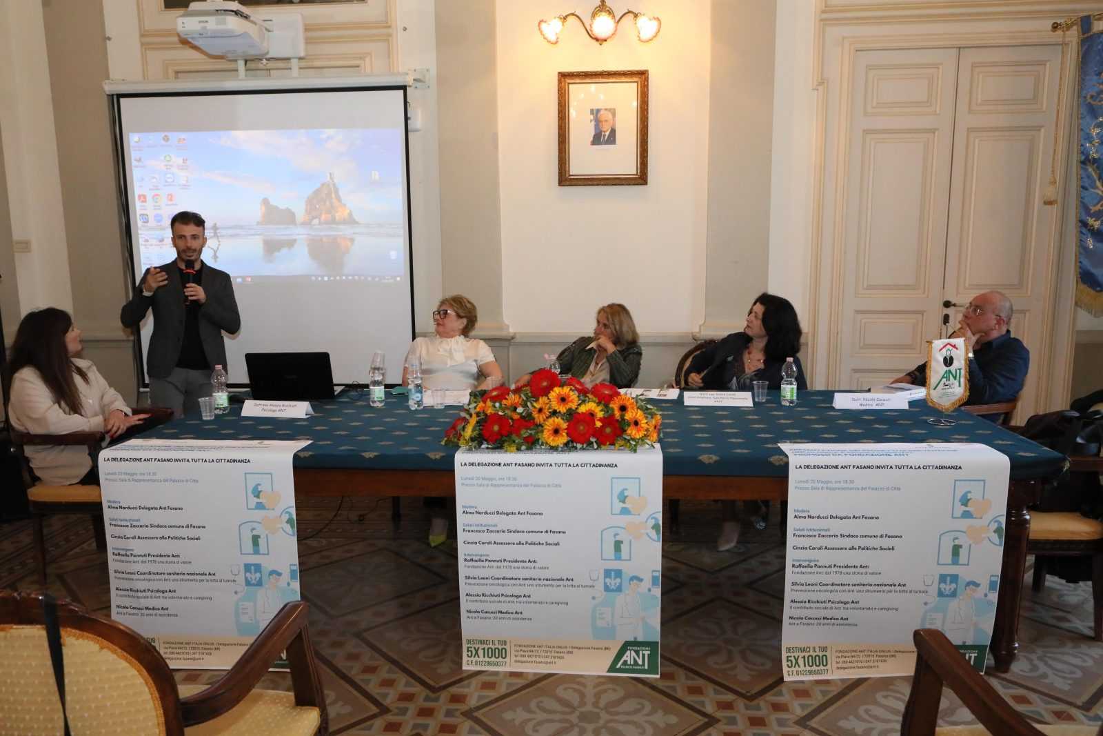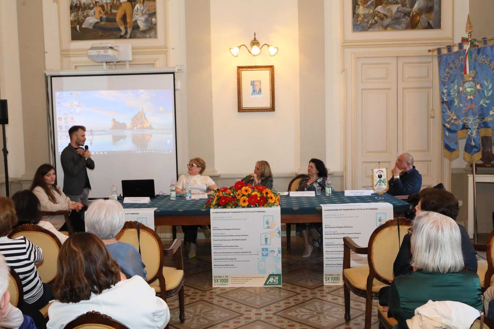 FASANO- Ieri sera, lunedì 20 maggio, presso la Sala di Rappresentanza di Palazzo di Città si è svolto l’incontro dal titolo “Presentazione dei progetti di prevenzione oncologica e progetti sociali promossi da Fondazione ANT”. L’evento, organizzato dalla delegazione ANT di Fasano, ha visto la partecipazione di numerosi cittadini interessati alla prevenzione e alla lotta contro il cancro.