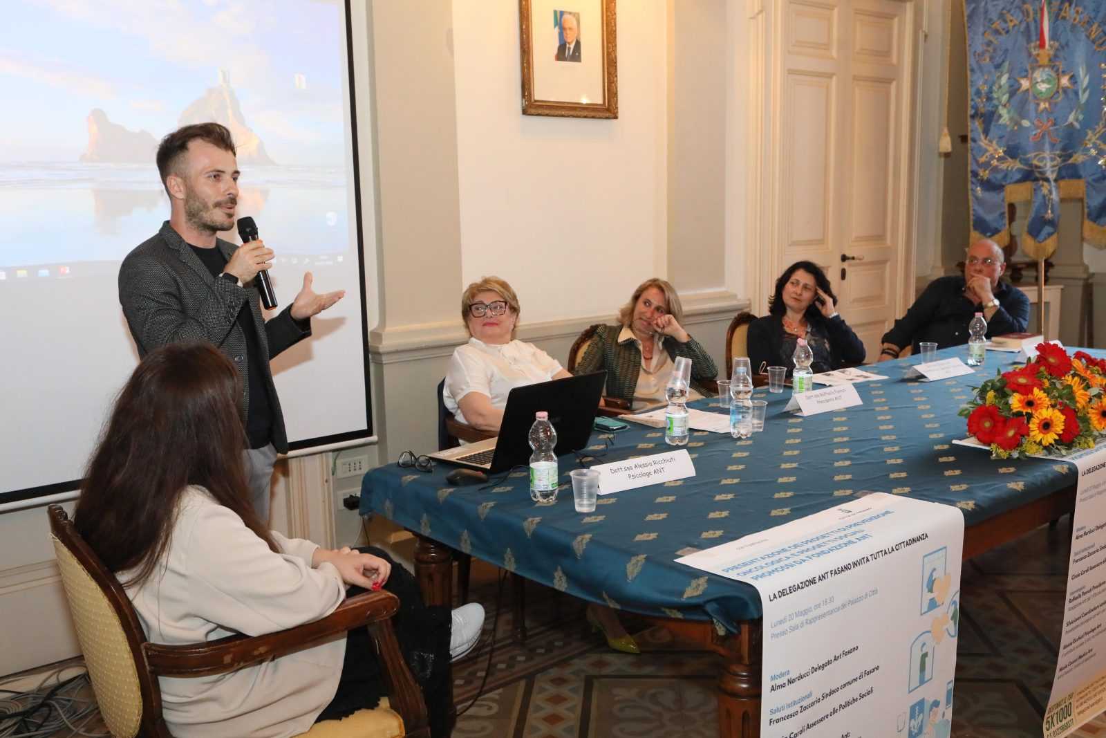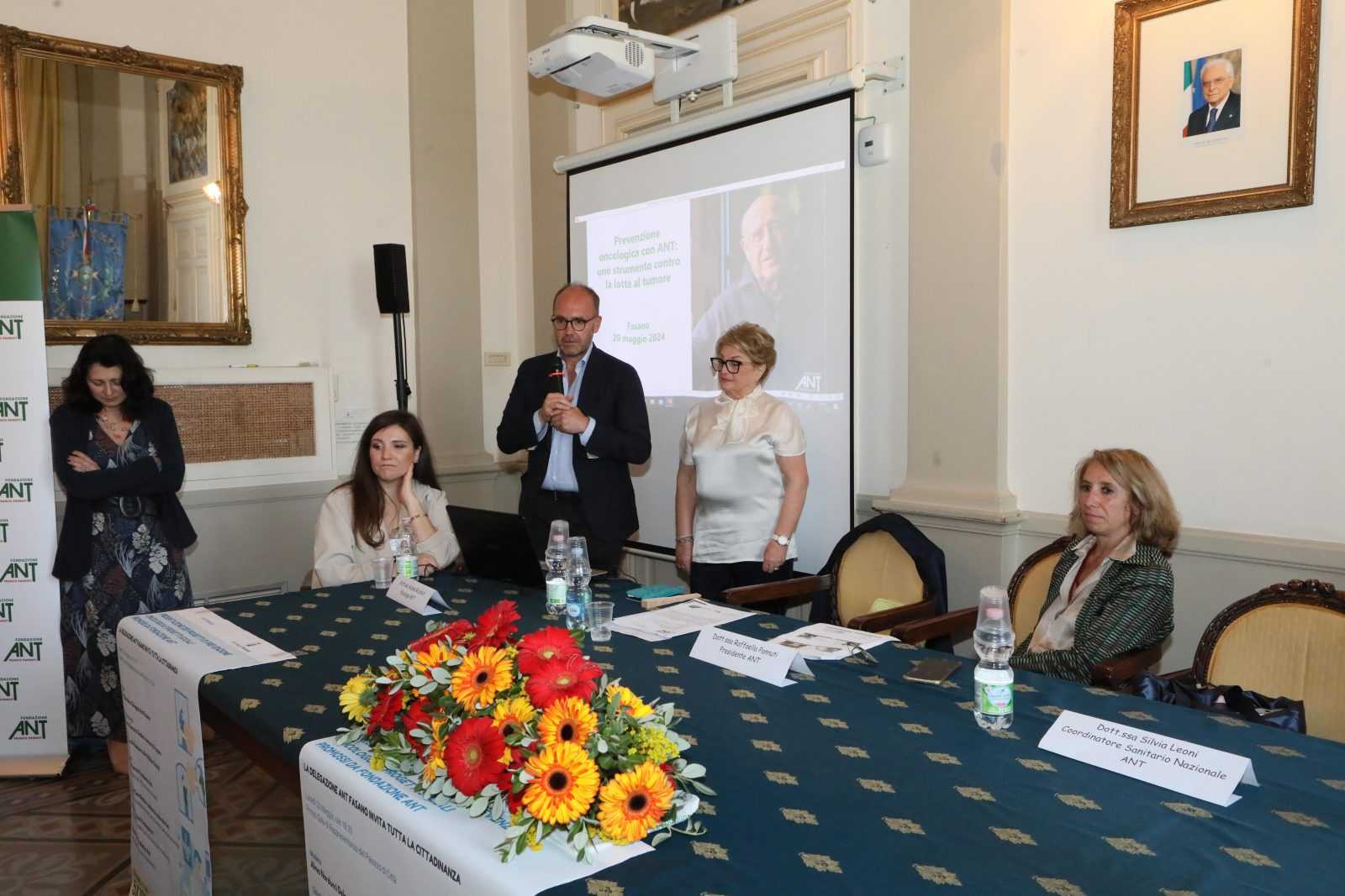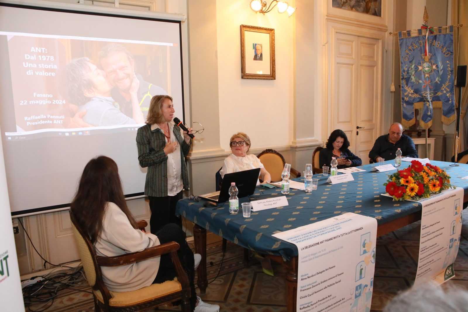 FASANO- Ieri sera, lunedì 20 maggio, presso la Sala di Rappresentanza di Palazzo di Città si è svolto l’incontro dal titolo “Presentazione dei progetti di prevenzione oncologica e progetti sociali promossi da Fondazione ANT”. L’evento, organizzato dalla delegazione ANT di Fasano, ha visto la partecipazione di numerosi cittadini interessati alla prevenzione e alla lotta contro il cancro.