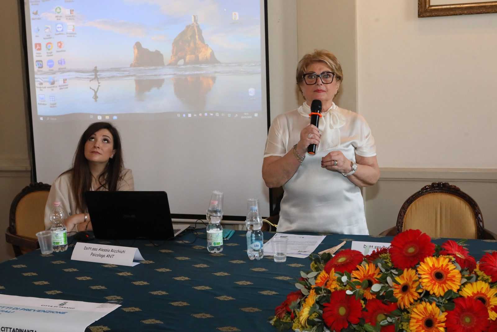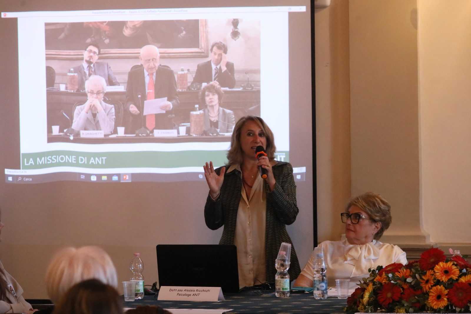 L’incontro ha visto l’intervento di Silvia Leoni, coordinatrice sanitaria nazionale di ANT, che ha illustrato le diverse tipologie di prevenzione oncologica: primaria, secondaria e terziaria. La prevenzione primaria si concentra sulla riduzione o l’eliminazione dell’esposizione agli agenti cancerogeni, sulla modifica degli stili di vita e sulle vaccinazioni contro virus come l’epatite B e il papilloma virus (HPV). La prevenzione secondaria riguarda la diagnosi precoce delle lesioni neoplastiche, consentendo trattamenti tempestivi e riducendo la mortalità. A tal proposito, la Leoni ha fornito informazioni sugli screening gratuiti e sui vari progetti di prevenzione secondaria di ANT, tra cui quelli dedicati alla ginecologia, mammella, melanoma, tiroide, testicolo e cavo orale.
