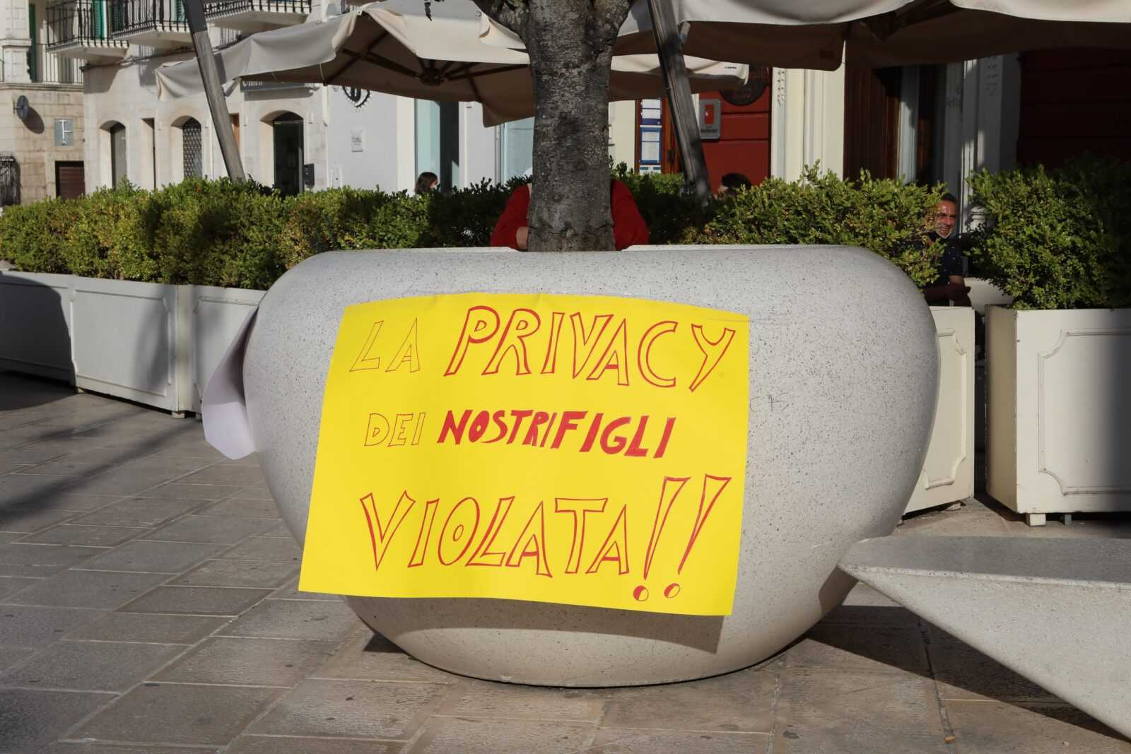 I genitori, per l’intera manifestazione, hanno intonato dei cori contro la dirigente scolastica e mostrato striscioni di protesta.