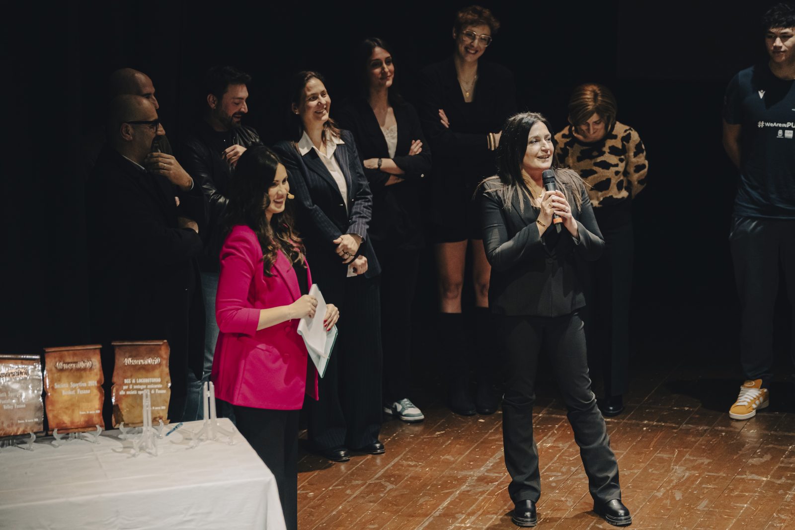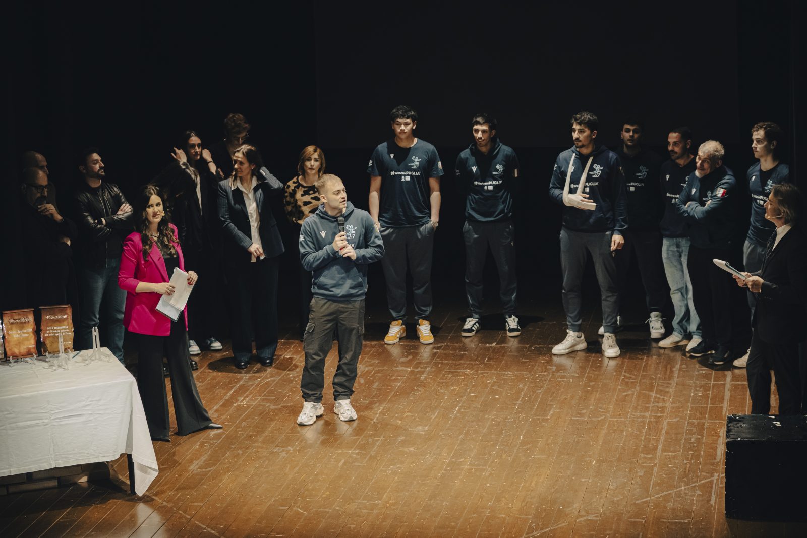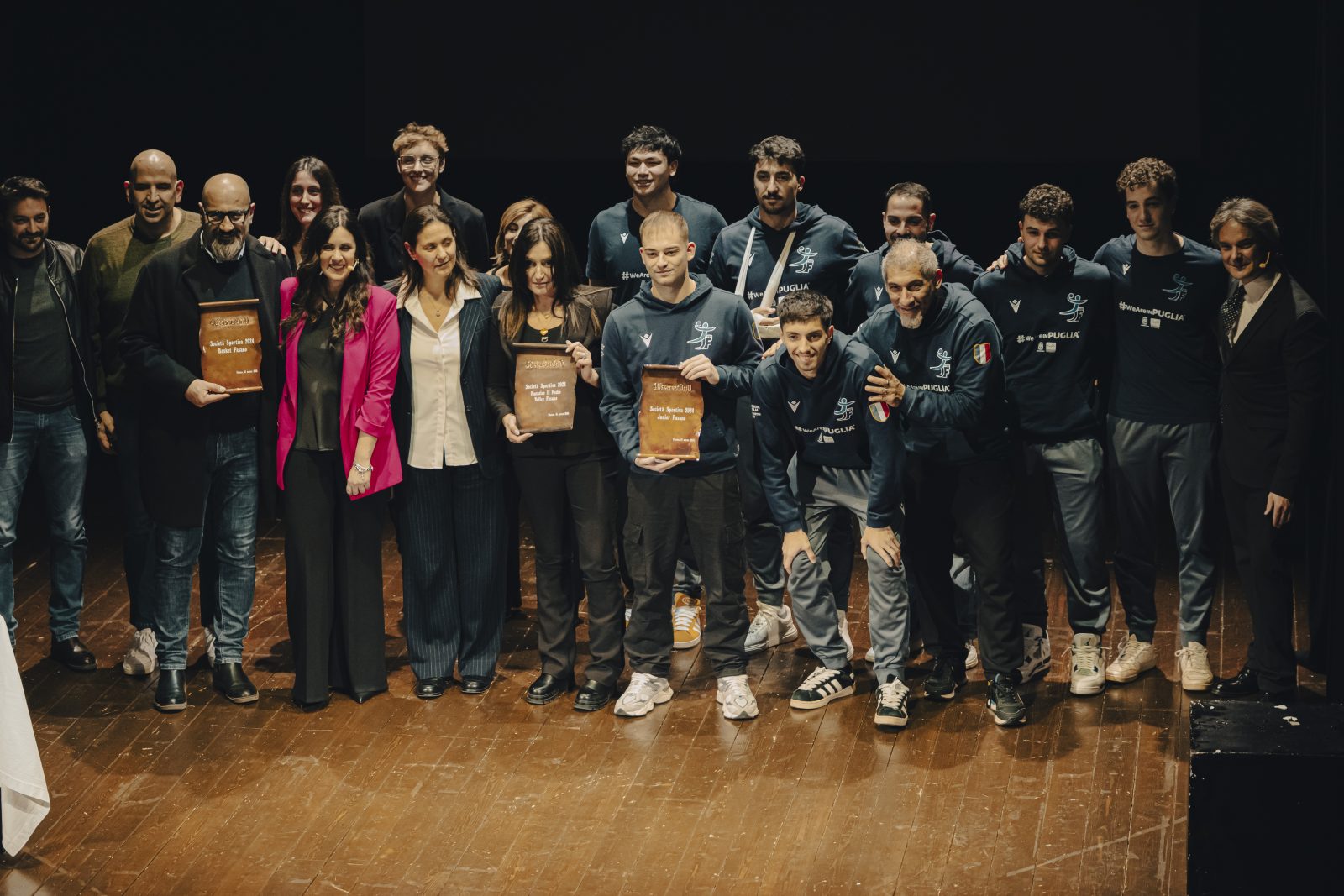 Gli uomini del Palazzetto dello Sport (2023): Francesco Zaccaria (sindaco), Nicola Latorre (senatore), Fabiano Amati (consigliere regionale), Angelo Dicarolo (dirigente Junior Fasano); Antonio Scianaro (imprenditore), che hanno ripercorso le tappe che hanno portato alla realizzazione dell’importante opera pubblica fasanese;