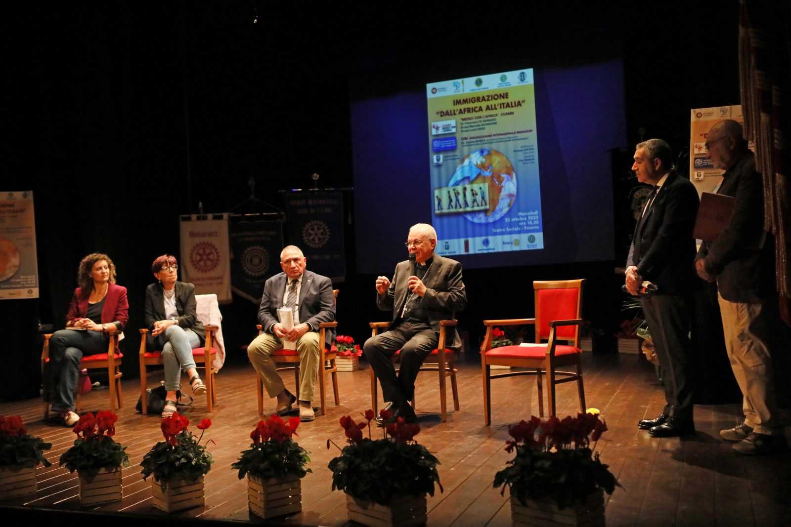 Di grande intensità anche le parole di mons. Giuseppe Favale, vescovo della diocesi Conversano-Monopoli. Nel suo intervento, a conclusione della serata, ha spiegato che l’immigrazione non deve ritenersi un problema ma un’opportunità di crescita per la società, per il territorio, per l’esperienza umana. L’Africa, insieme alla sua popolazione, va amata. I fratelli africani affrontano le grandi difficoltà del viaggio pur di lavorare e poter aiutare le loro famiglie e quindi vanno aiutati ed integrati perché ogni essere umano deve avere la sua dignità. Ha poi evidenziato che tanti sono i sacerdoti di origine africana che operano tra noi e che dimostrano, con il loro operato, di essere persone dalla grande ricchezza umana.