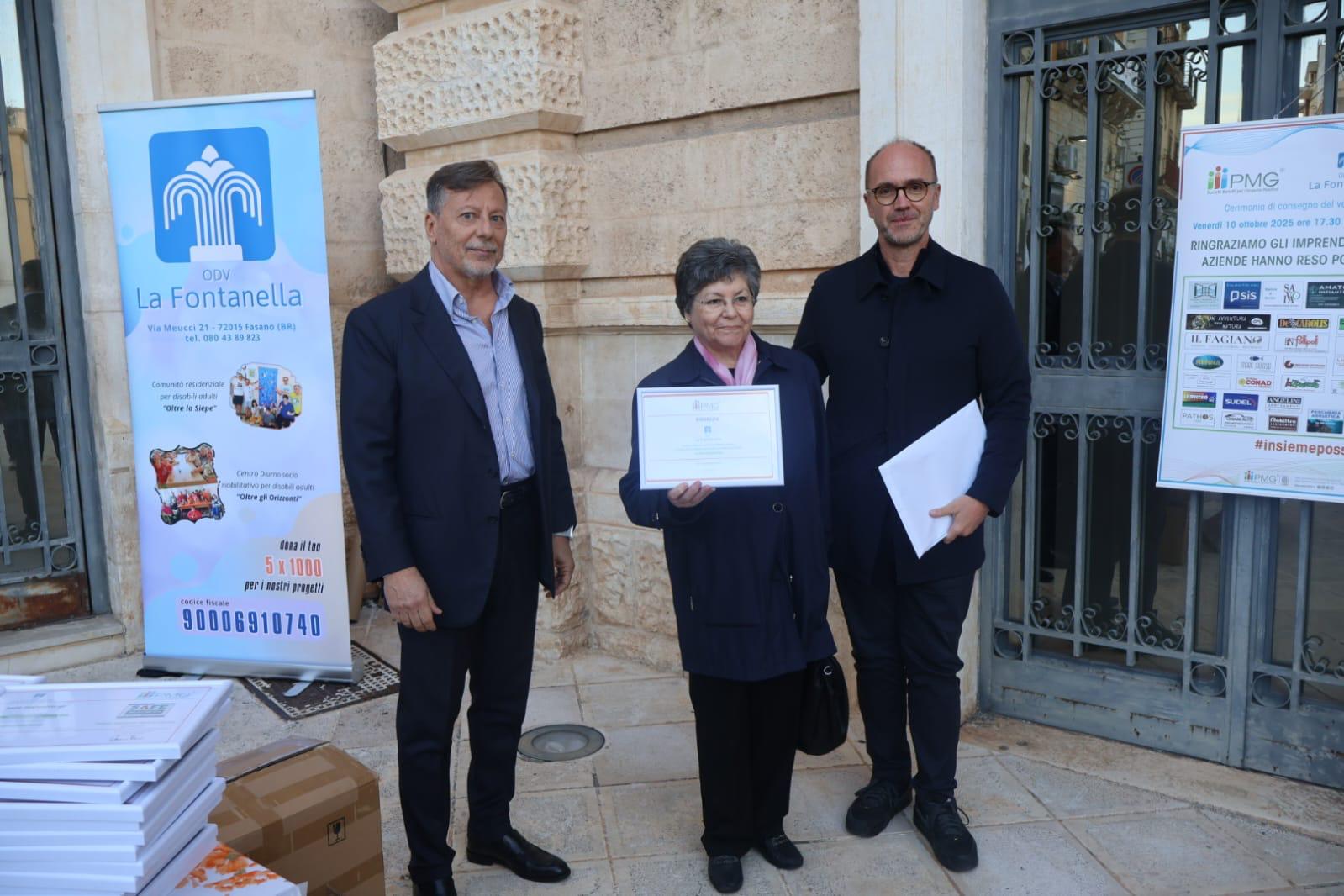 FASANO – Generosità e altruismo, sorrisi e abbracci, hanno colorato Piazza Ciaia lo scorso venerdì 10 ottobre in occasione dell’inaugurazione del nuovo pulmino dell’ODV “La Fontanella”. Una vera e propria festa per la rinnovata alleanza sociale tra le aziende fasanesi, l’Amministrazione comunale e la PMG: una collaborazione, attiva dal 2001, che consente a La Fontanella di usufruire di mezzi attrezzati per il trasporto di persone con disabilità attraverso un progetto sociale dedicato.