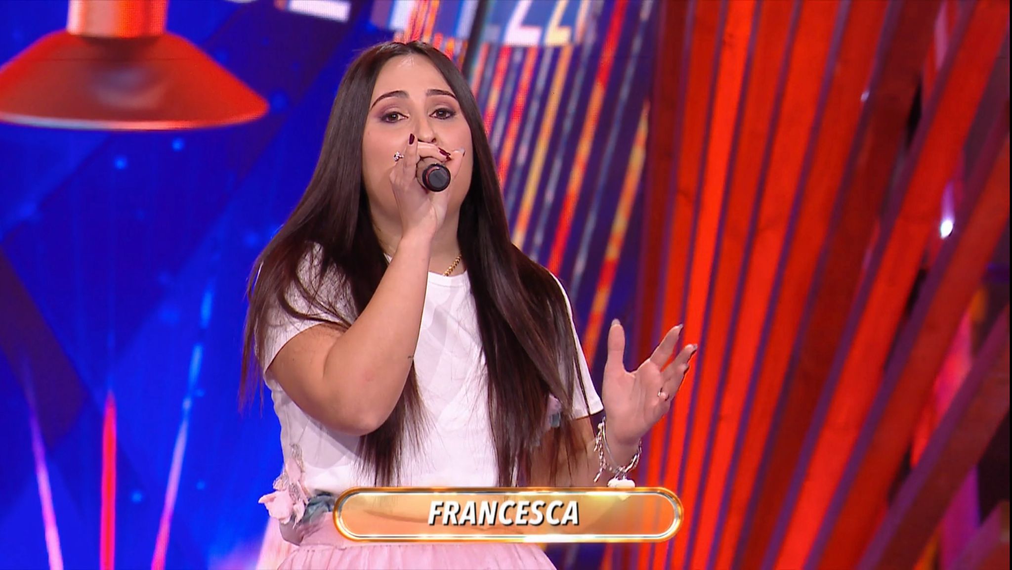 La giovane di Fasano ha scelto di iniziare la sua avventura nel programma con “Cuore” di Rita Pavone, dimostrando subito il suo amore per la musica italiana. Tuttavia, nonostante il suo impegno, Francesca è stata eliminata alla prima sfida, dopo aver commesso degli errori nelle categorie “Navigati” e “Impacciati”, esibendosi con “Mare di guai” di Ariete e “Parole di burro” di Carmen Consoli.