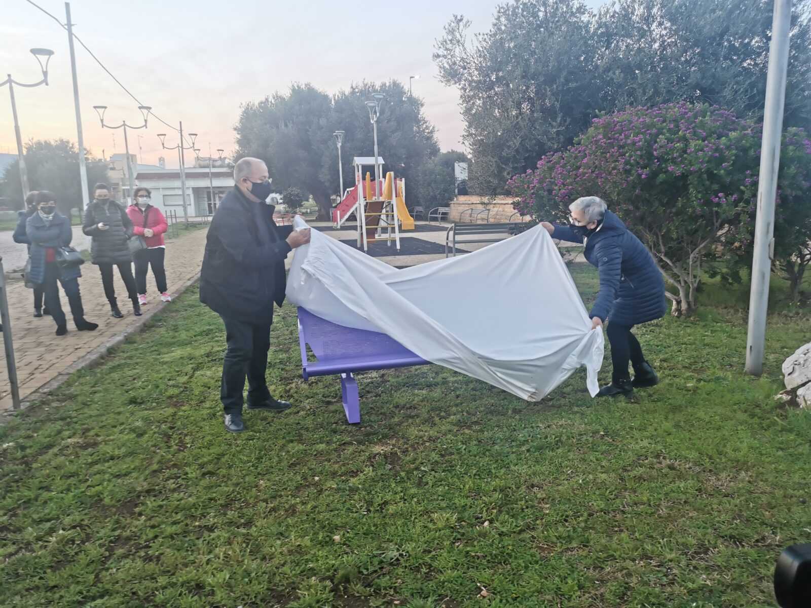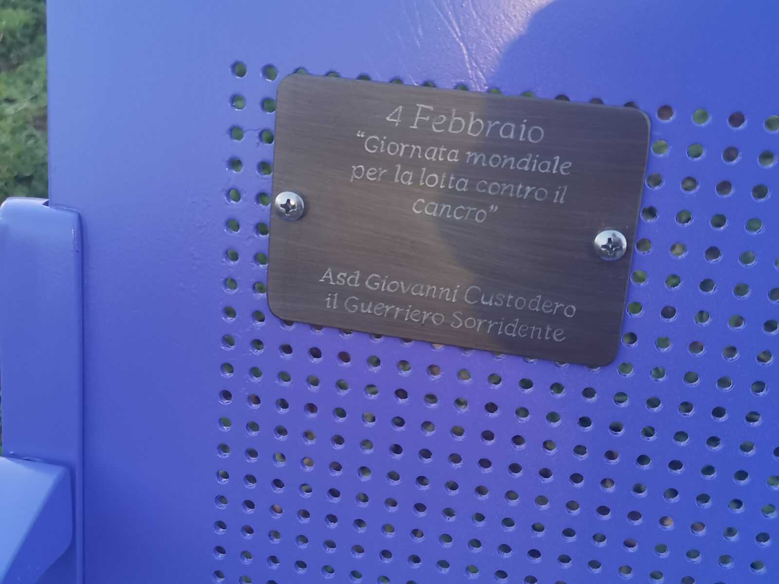 FASANO – Il 4 febbraio ricorre la “Giornata mondiale contro il Cancro” e l’associazione “Giovanni Custodero – Il guerriero sorridente” ha voluto ricordare questo appuntamento regalando alla comunità di Pezze di Greco una panchina nella villetta a sud della popolosa frazione fasanese, di fianco all’elmo del guerriero inaugurato nel novembre scorso. Il colore della panchina è viola, colore simbolo del cancro.