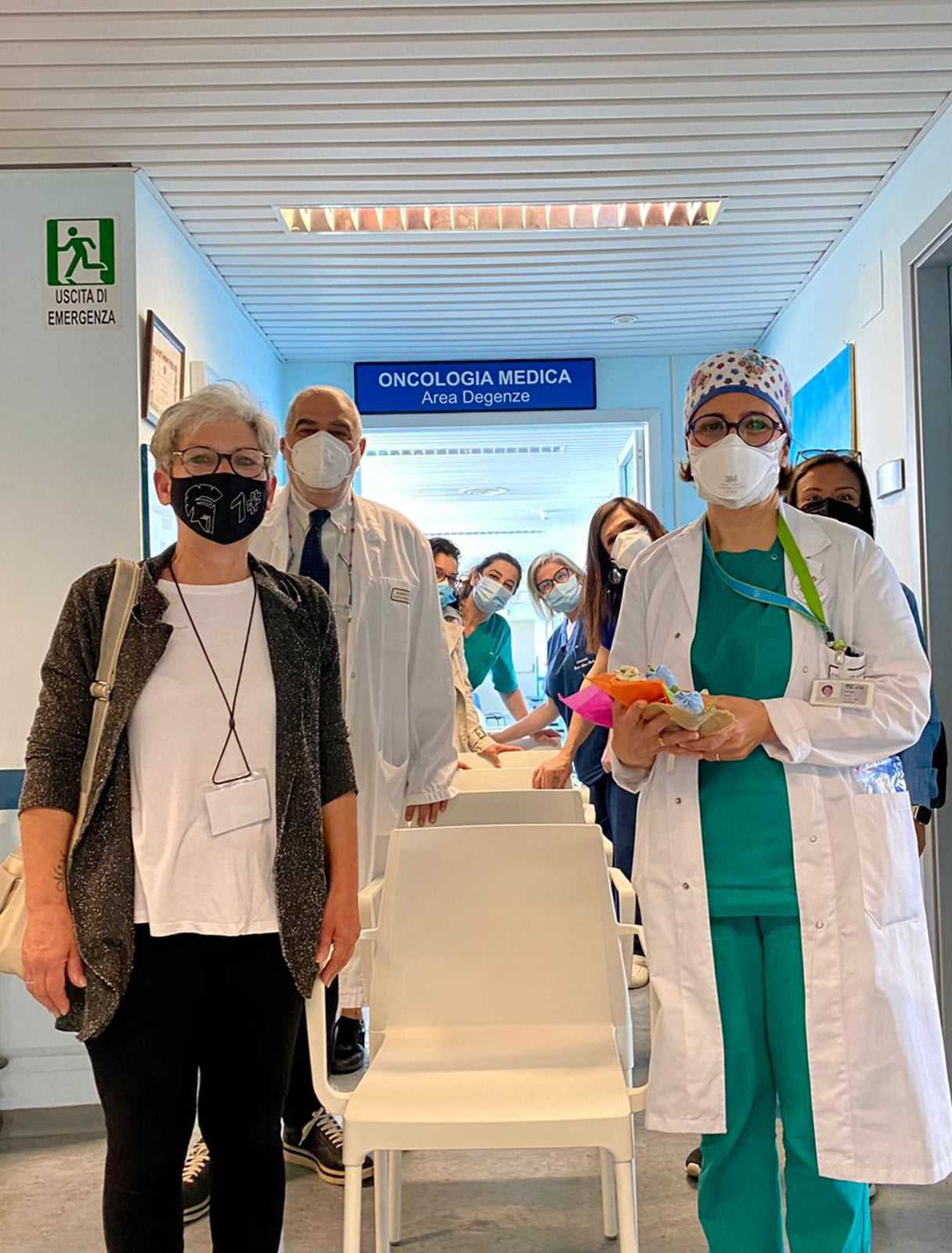 Inoltre, l’associazione ha regalato all’Oncologia Medica del “Perrino” di Brindisi venti sedie che saranno sistemate affianco ai letti dei pazienti, utilizzate per rinnovare le sedute del reparto di degenza, ma soprattutto per dare conforto a chi supporta il proprio caro nel lungo percorso.