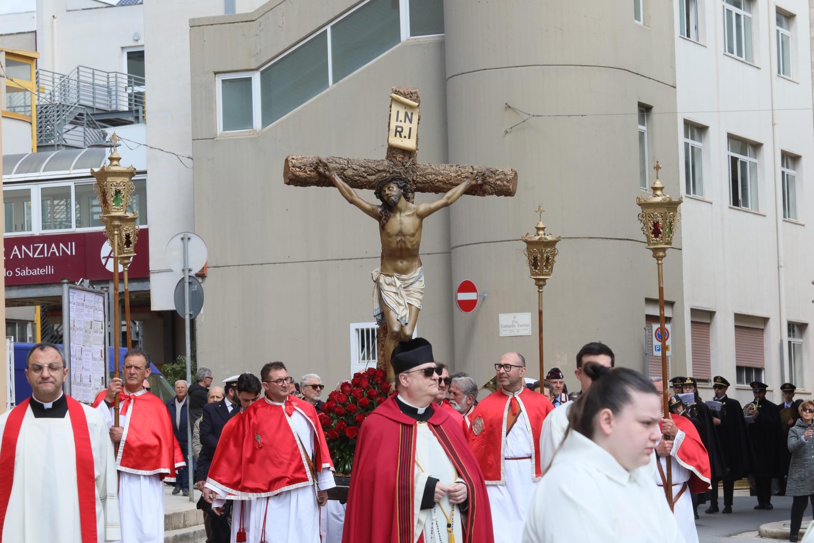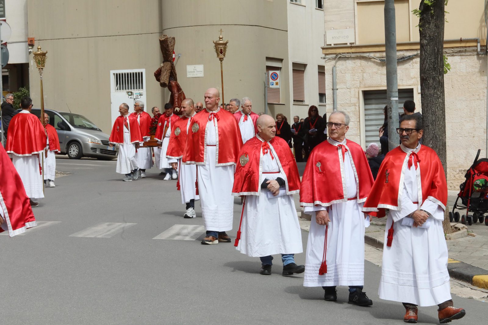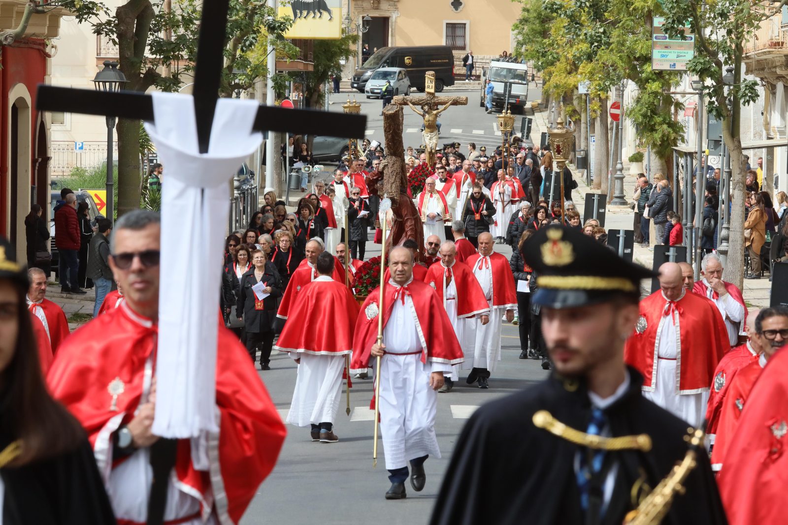Si riprenderà stasera, alle ore 19:00, dunque al termine dell’azione liturgica, con il corteo dei fedeli de La Pietà, a cura della Confraternita S. Maria de La Salette e S. Francesco di Paola. In seguito, ci saranno le processioni del Cristo nel sepolcro della Confraternita Assunta (ore 20:30), per finire con L’Addolorata della Confraternita del Purgatorio, che alle 22:30 chiuderà le processioni prima della Pasqua.