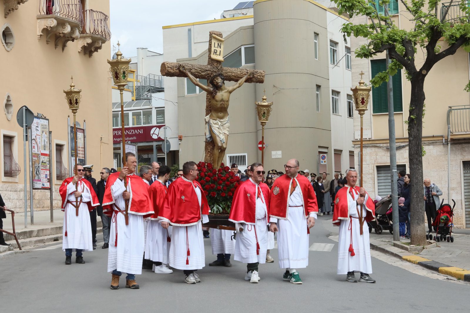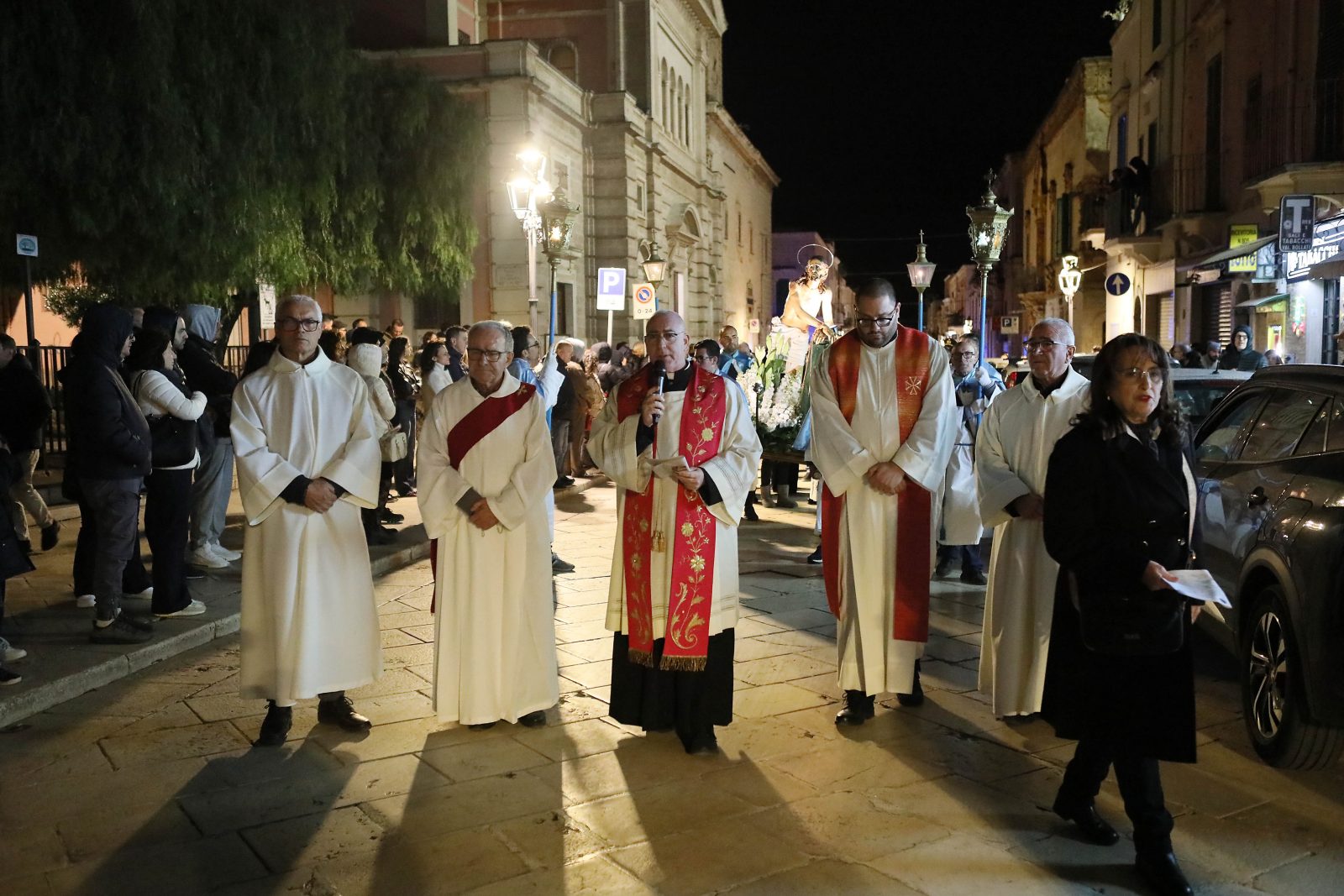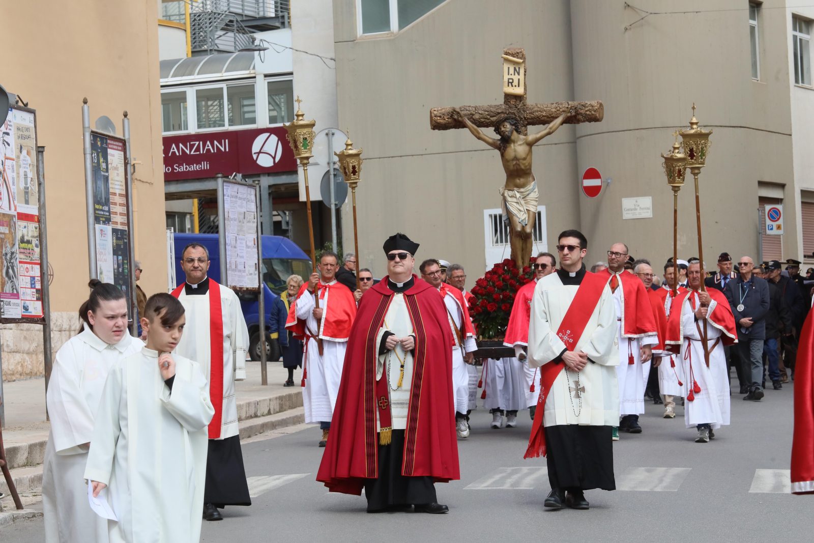 Si riprenderà stasera, alle ore 19:00, dunque al termine dell’azione liturgica, con il corteo dei fedeli de La Pietà, a cura della Confraternita S. Maria de La Salette e S. Francesco di Paola. In seguito, ci saranno le processioni del Cristo nel sepolcro della Confraternita Assunta (ore 20:30), per finire con L’Addolorata della Confraternita del Purgatorio, che alle 22:30 chiuderà le processioni prima della Pasqua.