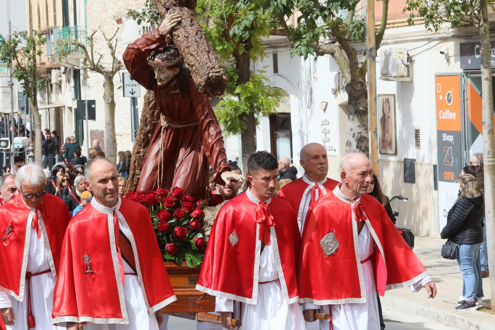 Oggi, venerdì 18 aprile, si partirà con la processione della statua Ecce Homo dell’Ordine Francescano Secolare, alle ore 9:00, dalla Chiesa di San Francesco D’Assisi, e con i Misteri del Cristo portante la croce e Cristo spirante della Confraternita del SS. Sacramento, con partenza dalla Chiesa Matrice alle ore 10:30.