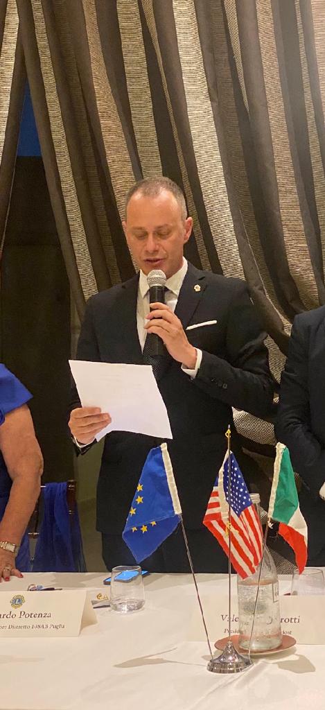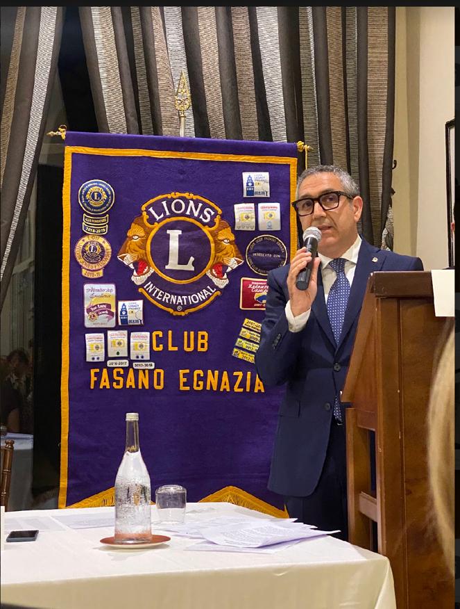 Sono seguiti gli interventi di Giuseppe Ancona, presidente uscente del Lions Club Fasano Egnazia, e di Valerio Maria Caparrotti, presidente uscente del Lions Club Fasano Host.