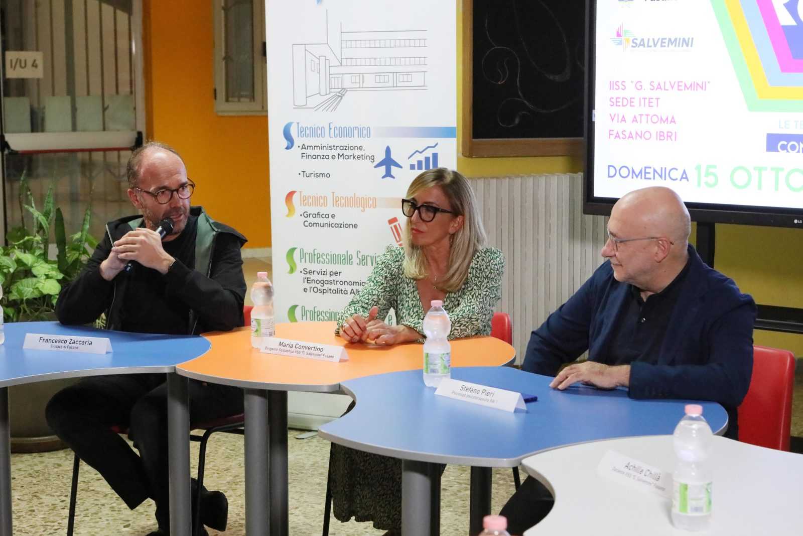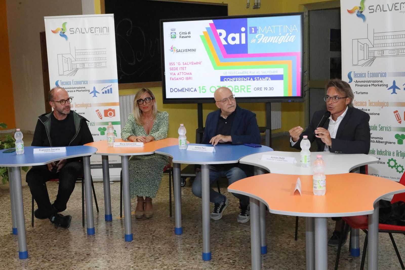 Si tratta di un importante evento cui partecipa l’istituto diretto dalla dirigente Marella Convertino, che è stato presentato ieri sera nel corso di una conferenza stampa che si è tenuta presso la sede L’Itet di via Attoma a Fasano, alla quale hanno partecipato, oltre alla stessa dirigente scolastica, il sindaco Francesco Zaccaria, il docente dell’Iiss “Salvemini” Achille Chillà, lo psicologo e psicoterapeuta di Rai 1 Stefano Pieri e il regista Rai Andrea Rispoli (figlio del noto conduttore televisivo, autore televisivo e conduttore radiofonico italiano Luciano Rispoli).