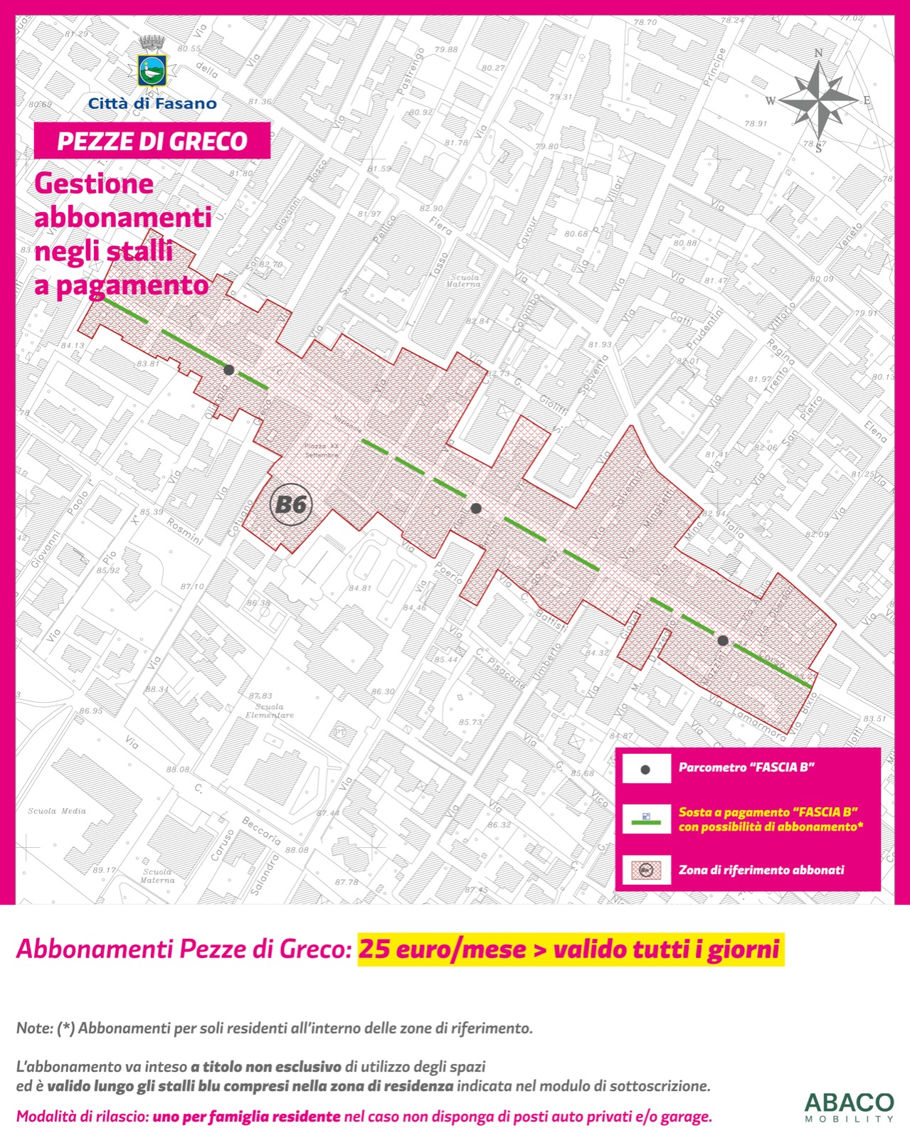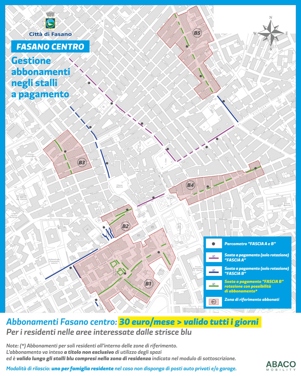L’abbonamento mensile può essere richiesto recandosi personalmente all’ufficio Abaco di via del Balì a Fasano, aperto lunedì, mercoledì e venerdì dalle 9:30 alle 12:30, per maggiori informazioni: