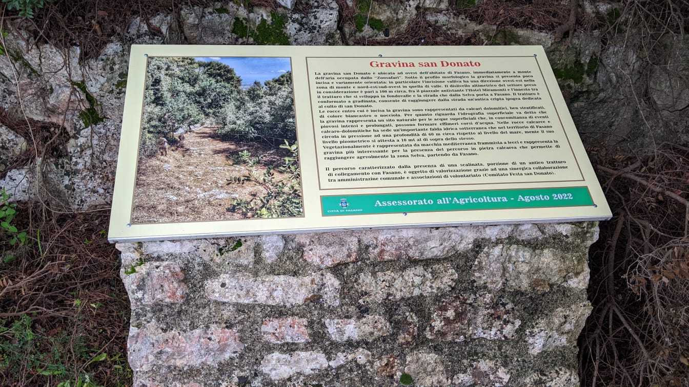 FASANO – Lungo le principali gravine del territorio di Fasano sono stati posizionati nuovi cartelli che ne indicano le caratteristiche e le peculiarità orografiche, geologiche e naturalistiche.
