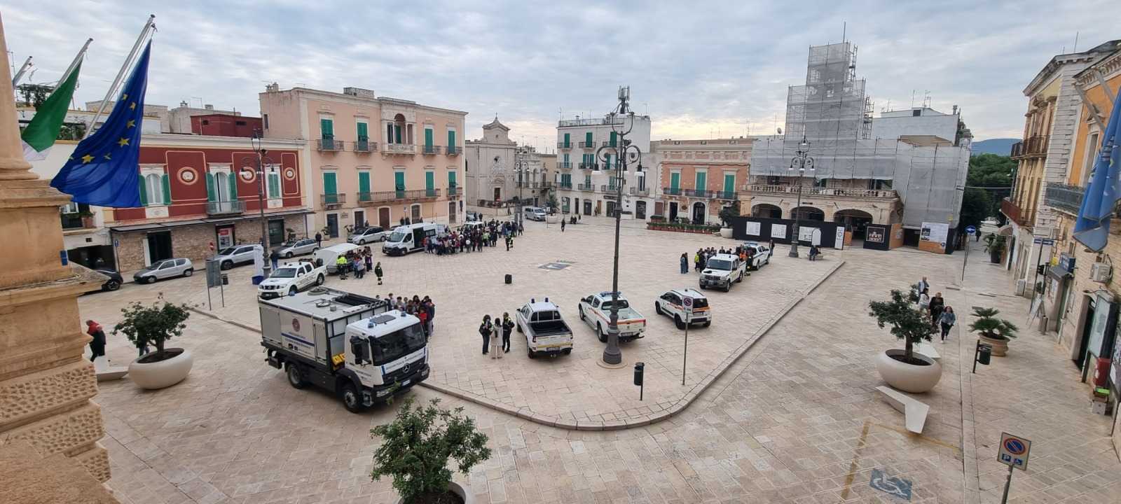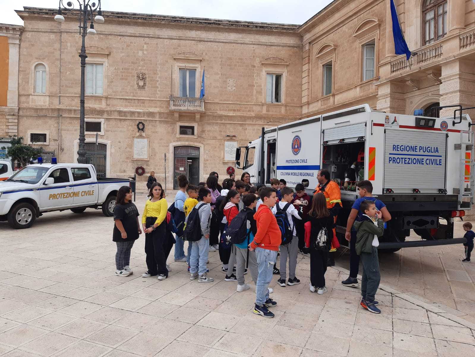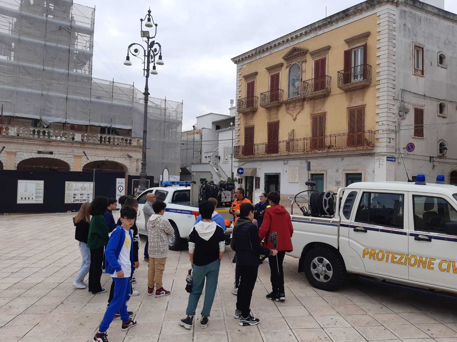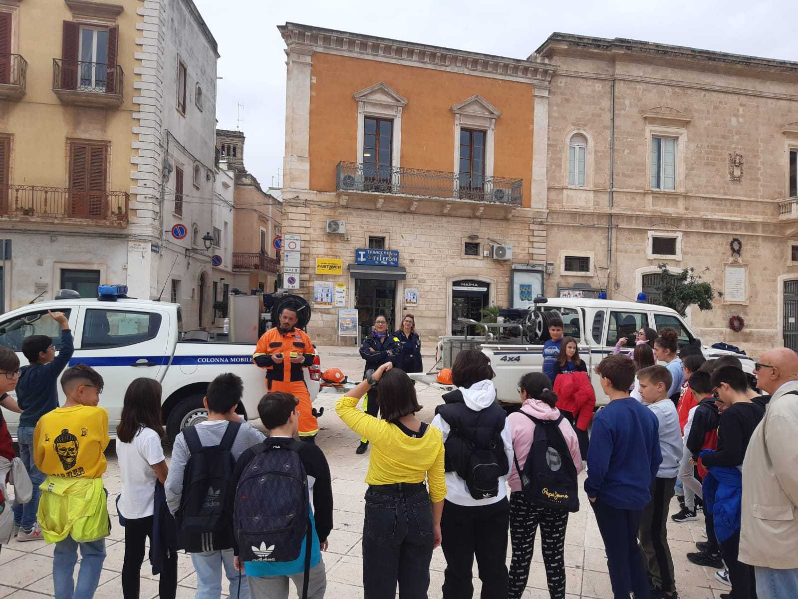 FASANO – Nell’ambito della Settimana nazionale di Protezione civile, ieri mattina (giovedì 13 ottobre) a Fasano in Piazza Ciaia si è tenuta una manifestazione di sensibilizzazione sui temi della Protezione civile rivolta agli studenti. Oltre 200 studenti delle scuole secondarie di primo grado e delle scuole superiori della città e delle frazioni hanno visitato una mostra di mezzi e attrezzature di Protezione civile e sono stati informati dai volontari di Protezione civile dei rischi che incombono sul territorio, della organizzazione e di come opera la Protezione civile a livello comunale e regionale.