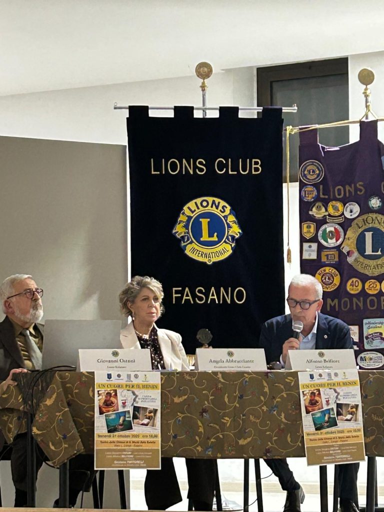 FASANO – Una serata di grande emozione quella vissuta venerdì 31 ottobre a Fasano per “Un Cuore per il Benin”, iniziativa ideata perpresentare il progetto “Africa”, un service a carattere internazionale sostenuto dal Lions Club Monopoli e dal Lions Club Salento Zero Barriere, grazie al quale si è dotato l’Hopital “La Croix” diZinvié, nel Benin, di un nuovo reparto di maternità, inaugurato nell’agosto scorso e realizzato grazie anche al finanziamento del Lions Club International Foundation.