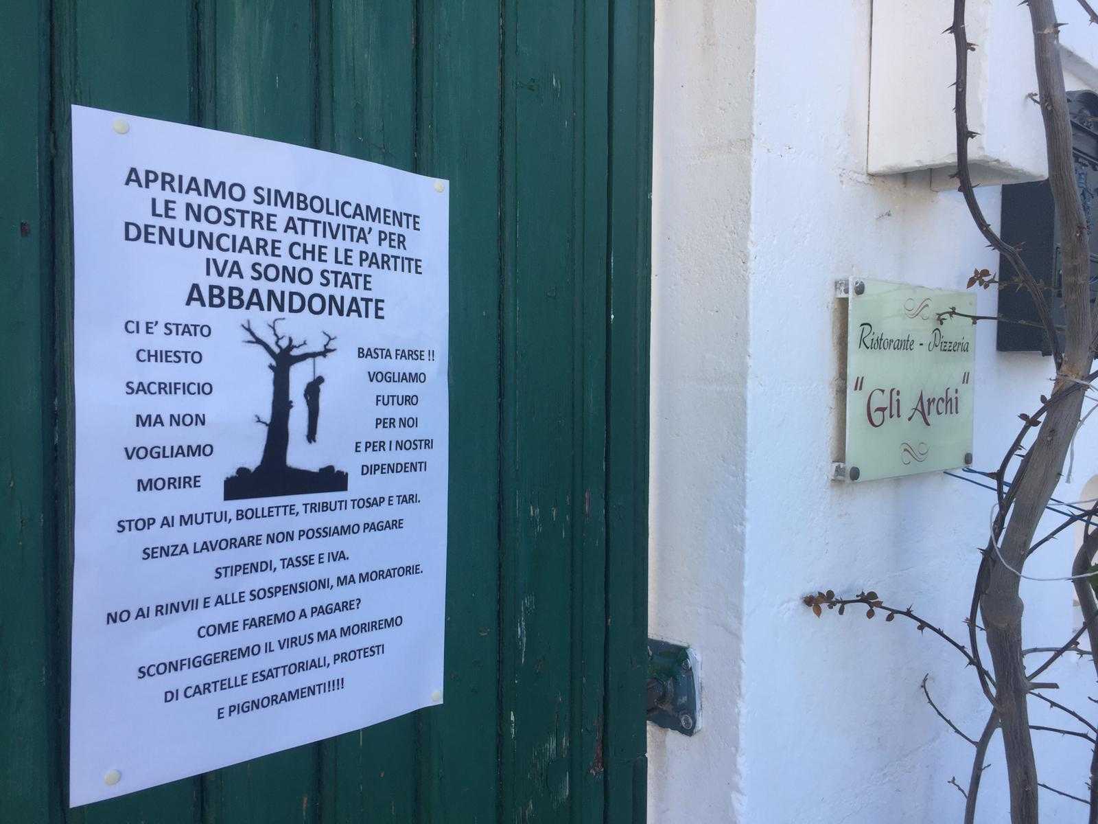 FASANO – Si è tenuto l’altro ieri (giovedì 9 aprile) su tutto il territorio nazionale, un flash mob di protesta con l’apertura simbolica delle attività commerciali e l’affissione di un manifesto di denuncia. É stato organizzato a Fasano, Ostuni e paesi limitrofi, con l’azione e la unione di esercenti raggruppati nel movimento civico “VRPI – La vera rivolta della partite iva”, unitamente ai referenti VRPI di ogni regione d’Italia e ad altri gruppi spontanei di categoria provenienti da tutta la nazione, in collaborazione altresì con il movimento D508.