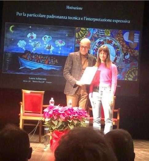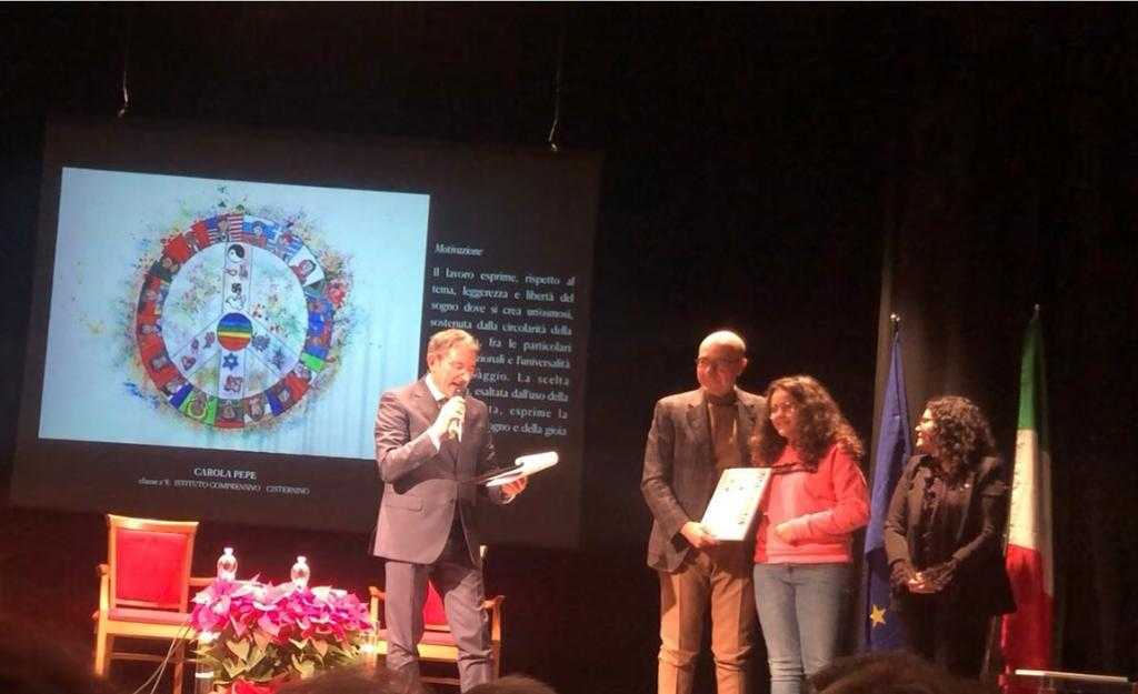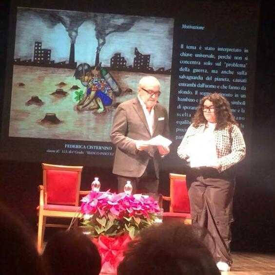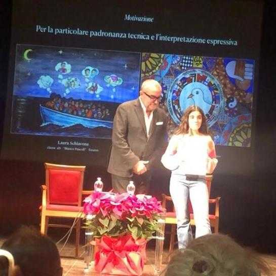 – Federica Cisternino, della 2^ C della scuola secondaria statale di I grado “Bianco–Pascoli” di Fasano, premiata dal giornalista Franco Di Mare.