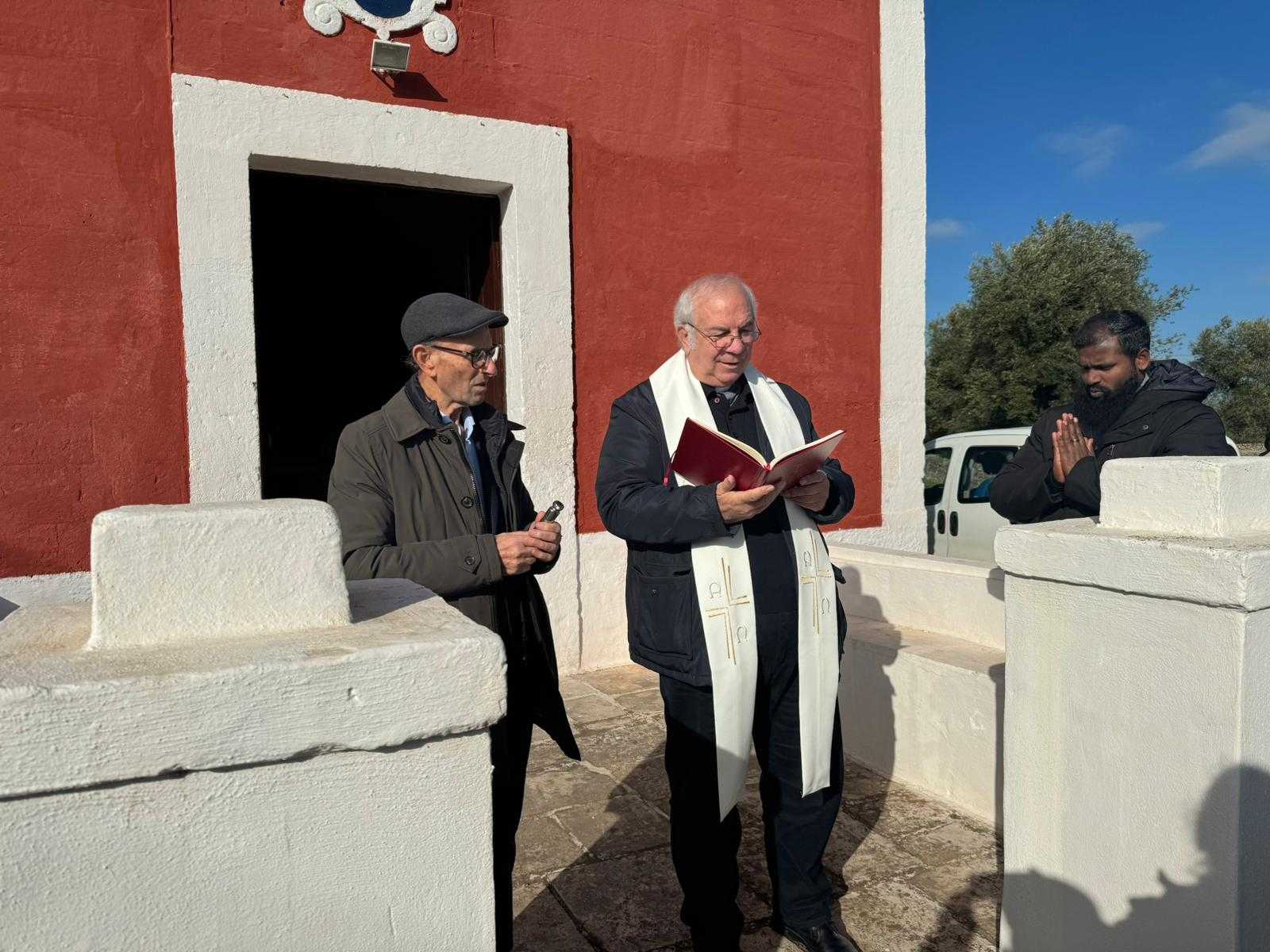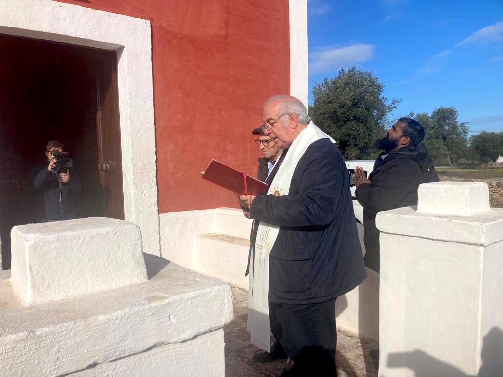 Questa mattina si è svolta l’emozionante cerimonia di benedizione della campana, che ha attirato l’intera comunità. Don Luigi Bianchessi, parroco della chiesetta e della parrocchia di Torre Canne, ha aperto la cerimonia, esprimendo gratitudine per il gesto generoso della famiglia Mangano. Paolo Narducci, custode della chiesa, ha poi rivolto un sentito ringraziamento a nome di tutti i residenti: «Questo mio breve pensiero è il sentimento di ciascuna persona che frequenta la nostra piccola chiesa; piccola nella dimensione, ma con un cuore grande. Appena saputo del furto della campana è stato un sentire unico: dobbiamo farne un’altra! Ma la generosità di “Canne Bianche” ci ha preceduto. E se oggi siamo qui per benedire questo loro dono non ci resta che dirvi semplicemente un grande grazie. Quando questa campana ci convocherà per la preghiera, non ci resterà altro da pensare a voi che generosamente avete provveduto a regalarne una nuova: grazie al dott. Mangano e quanti con lui hanno collaborato per ridarci una campana. Il Signore benedica il vostro lavoro e quello di ciascuno noi».