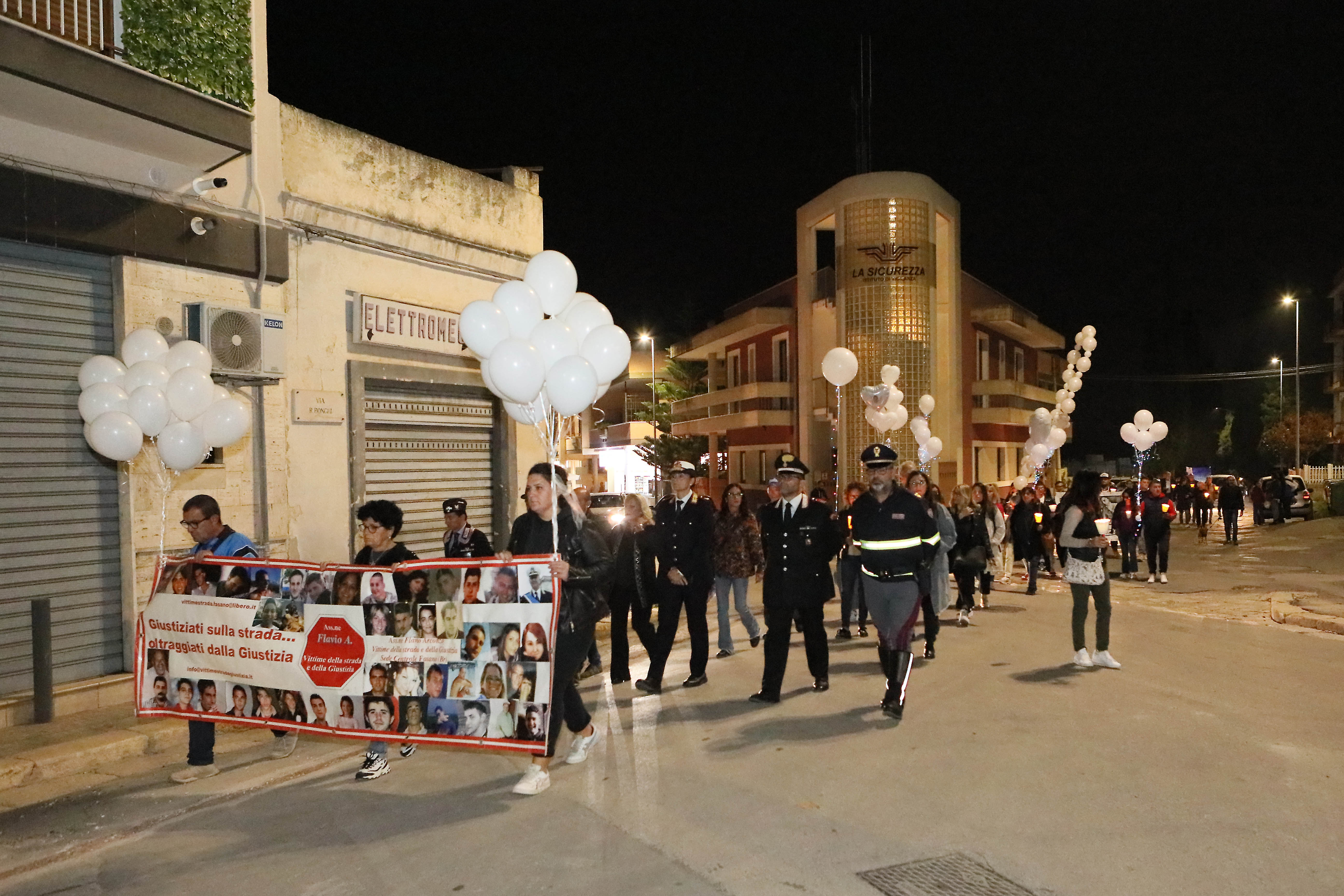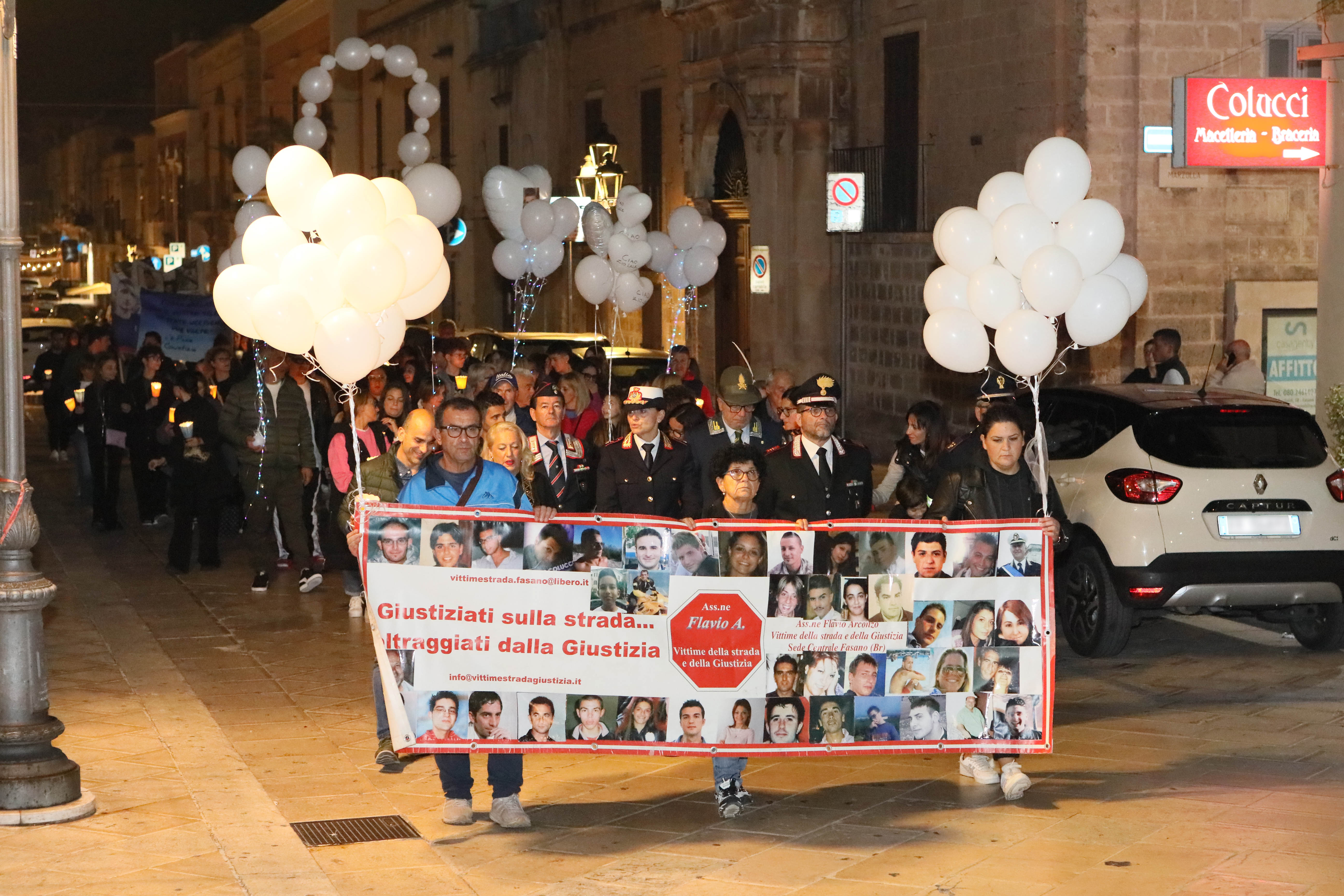 FASANO – Si è svolta martedì 18 ottobre la dodicesima edizione della “Fiaccolata per le vittime della strada” organizzata dall’ass. “Flavio Arconzo – Vittime della strada e della giustizia”. Si è trattato di una forte occasione per tornare a promuovere pubblicamente una necessaria sensibilizzazione sul rispetto delle regole del codice della strada e sulla sicurezza stradale per abbattere drasticamente il triste fenomeno delle vittime stradali.
