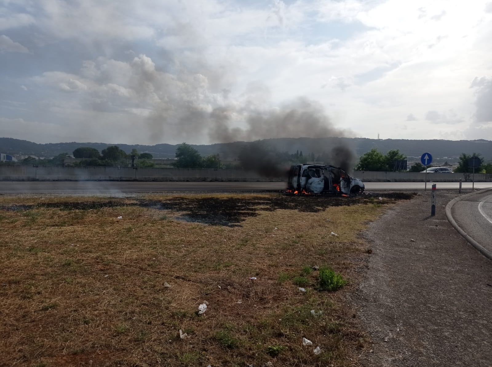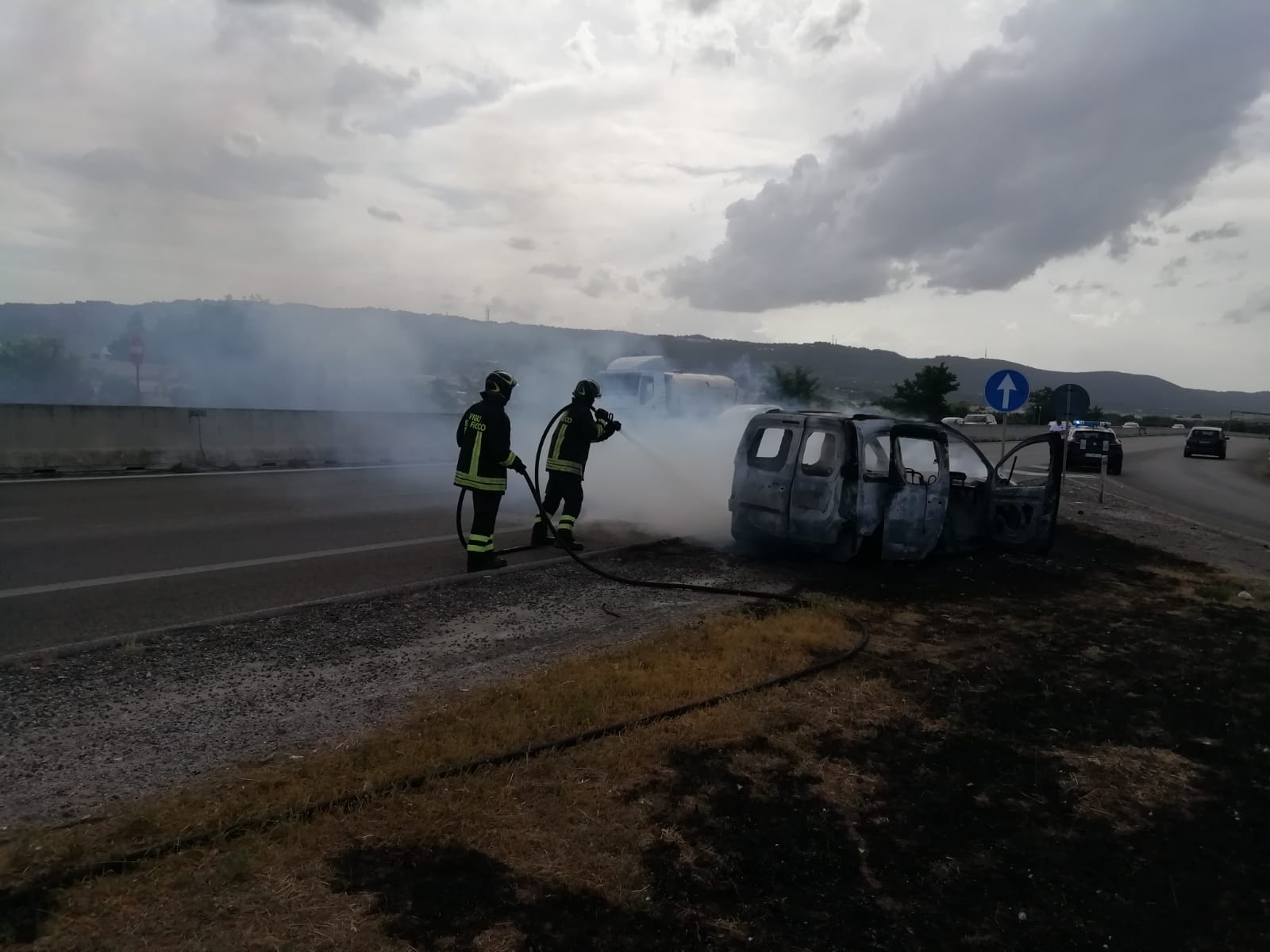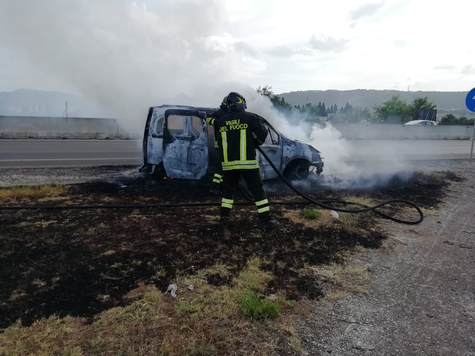 Ha fatto appena in tempo ad accostare e ad allontanarsi che il mezzo è stato avvolto dalle lingue di fuoco.
