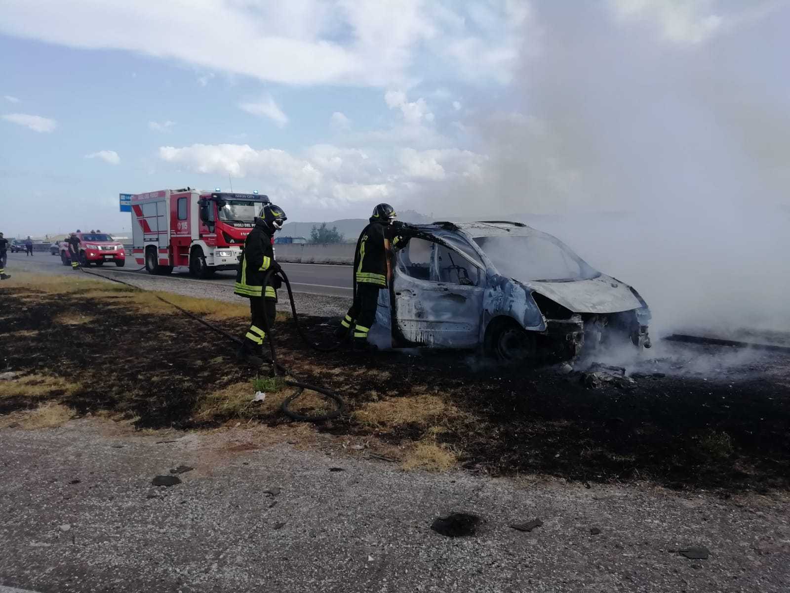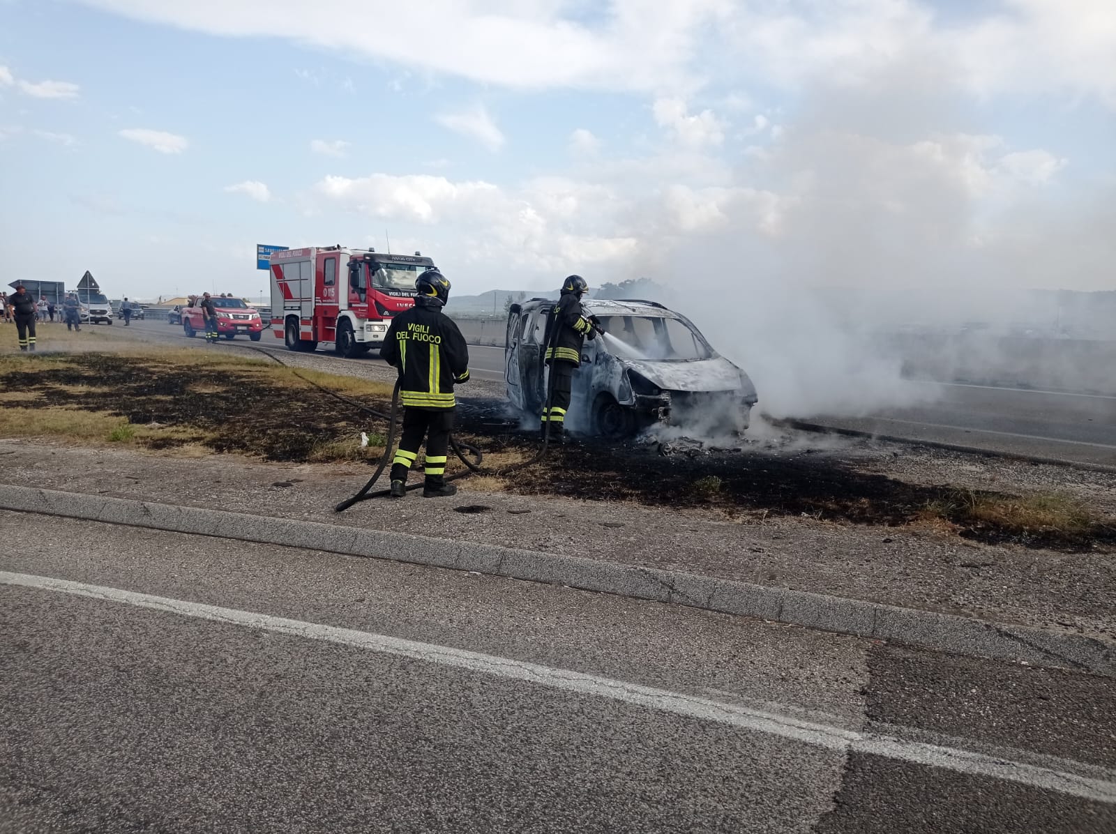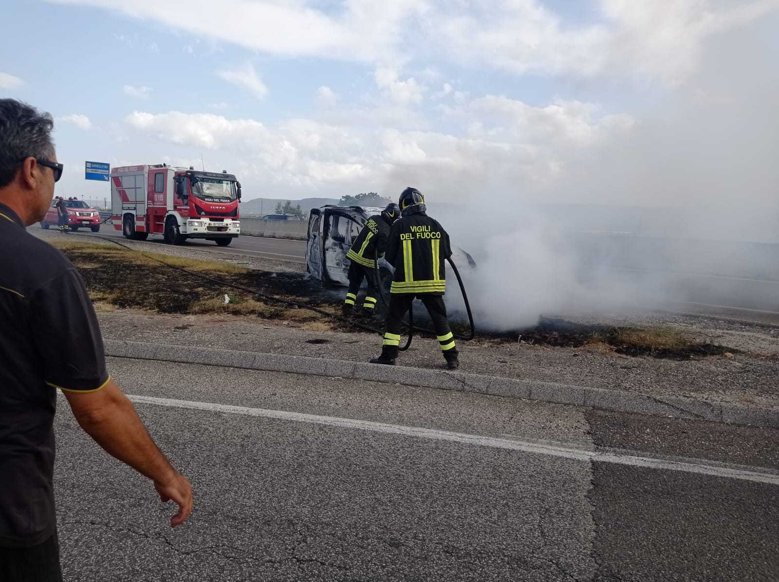 Ha fatto appena in tempo ad accostare e ad allontanarsi che il mezzo è stato avvolto dalle lingue di fuoco.