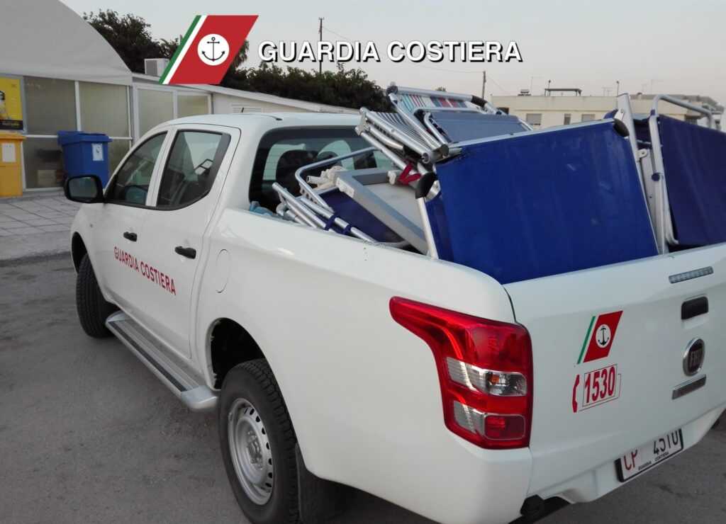 TORRE CANNE – La Capitaneria di Porto di Brindisi, lungo il litorale di Torre Canne, ha posto sotto sequestro a carico di ignoti, numerose lettini e ombrelloni. La violazione riguarda l’occupazione abusiva di area demaniale, infatti, come previsto dall’Ordinanza Balneare della Regione Puglia, non è consentito lasciarle sul litorale al fine di occupare lo spazio per il giorno successivo.