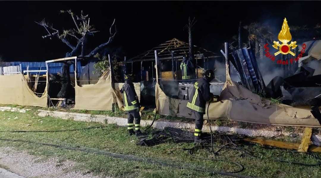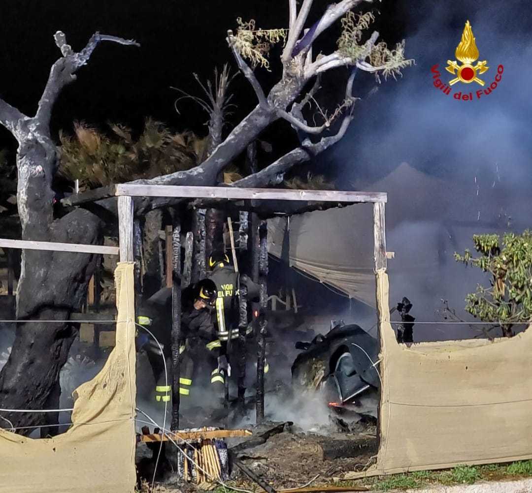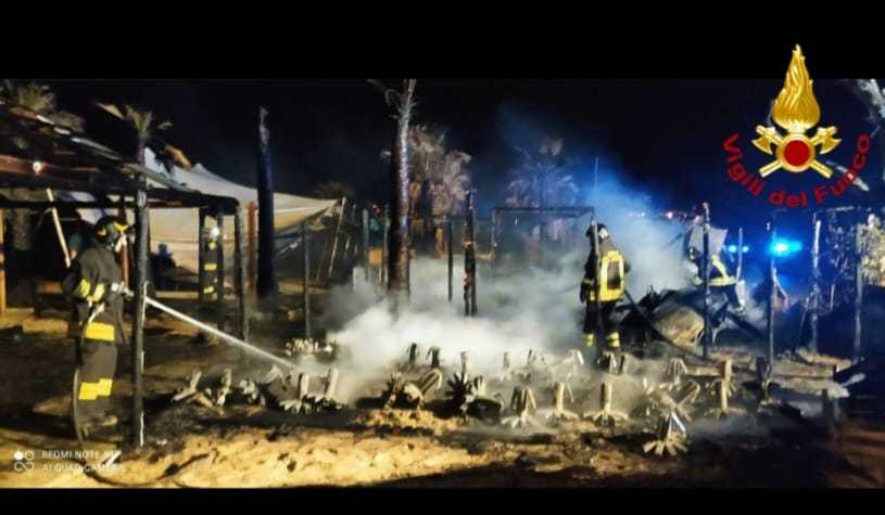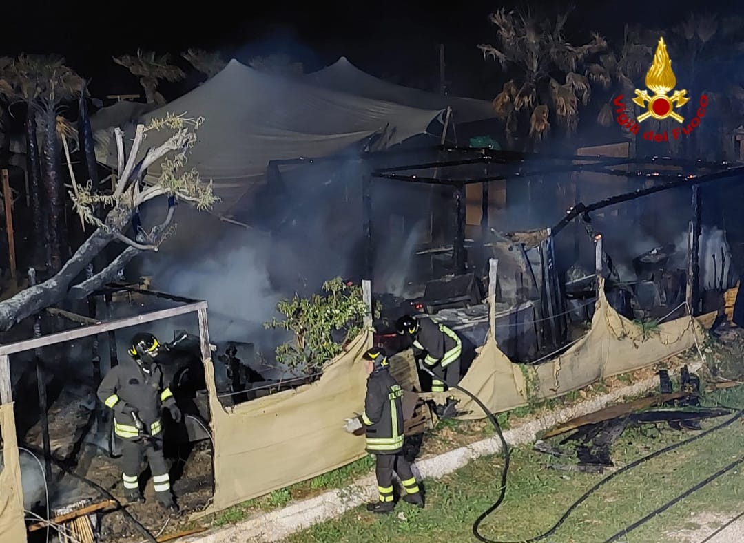 TORRE CANNE – Un vasto incendio ha interessato poco fa (intorno alle 21 di oggi 27 aprile) il noto stabilimento balneare Cala Maka a Torre Canne.