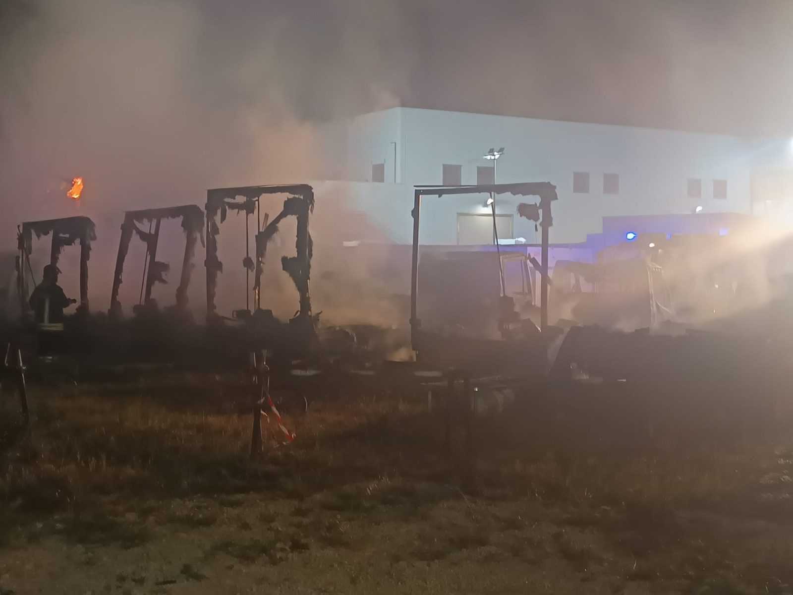FASANO – Intorno alle 20.30 di questa sera si è verificato un vasto incendio che sta interessando alcuni mezzi parcheggiati nel piazzale di una nota azienda fasanese che opera nel settore ittico.