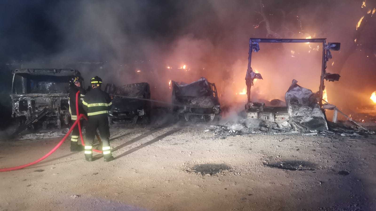 Si tratta della Lepore Mare, il cui stabilimento è ubicato su via dell’Agricoltura nella zona industriale nord di Fasano. I mezzi andati a fuoco, 5 iveco daily e 2 autocarri di proprietà di aziende che effettuano trasporti a conto terzi, erano parcheggiati nei pressi del parcheggio dell’azienda.
