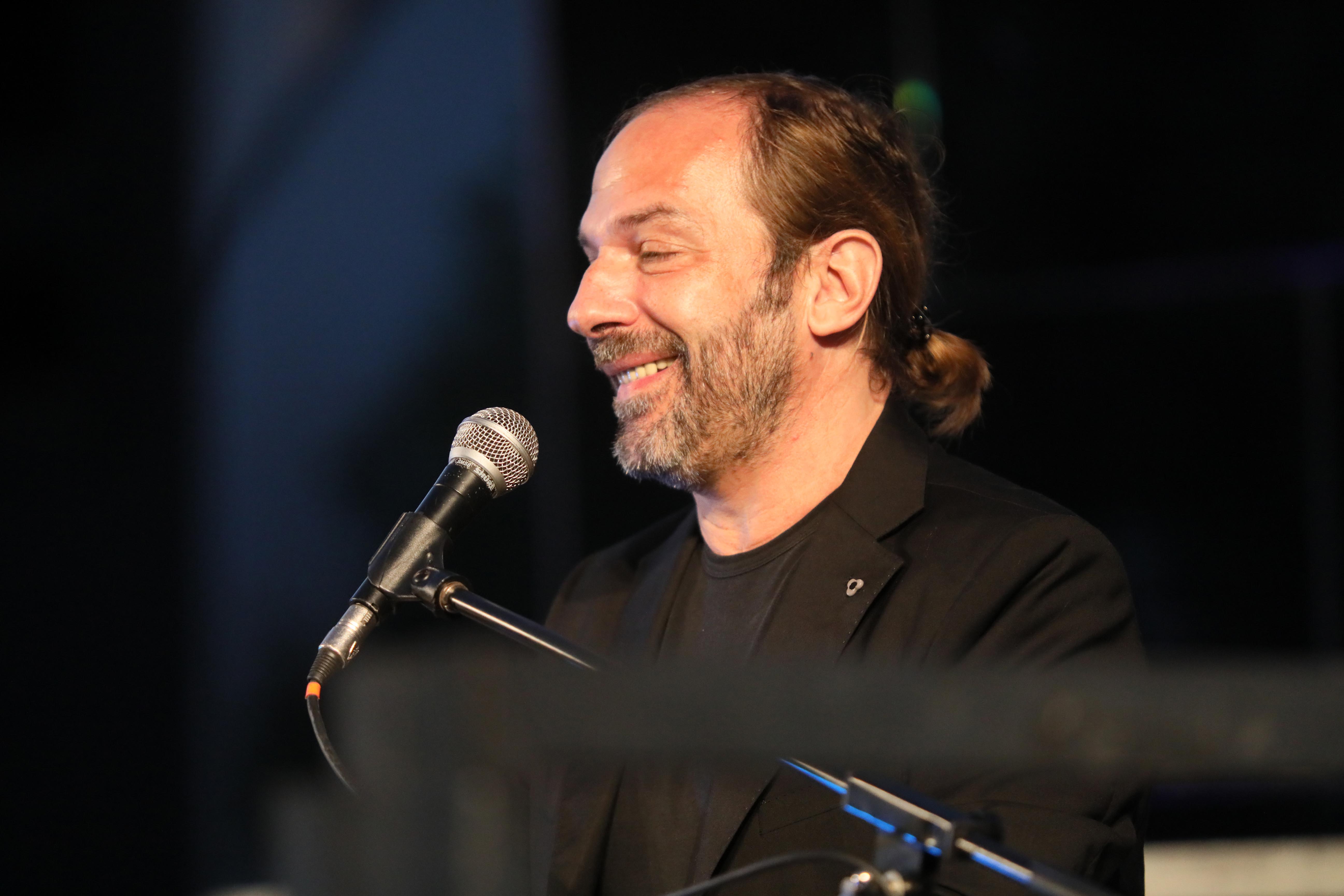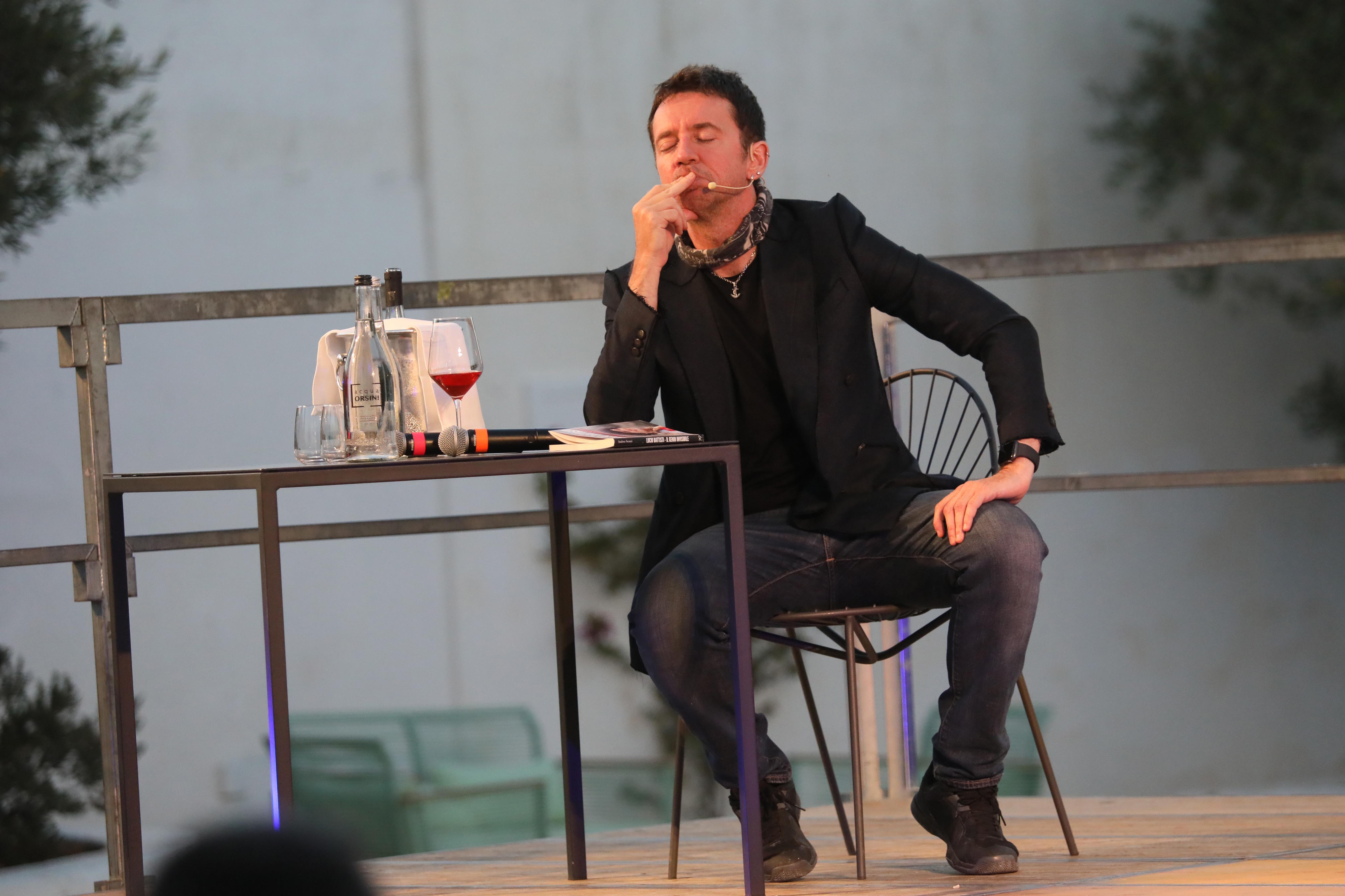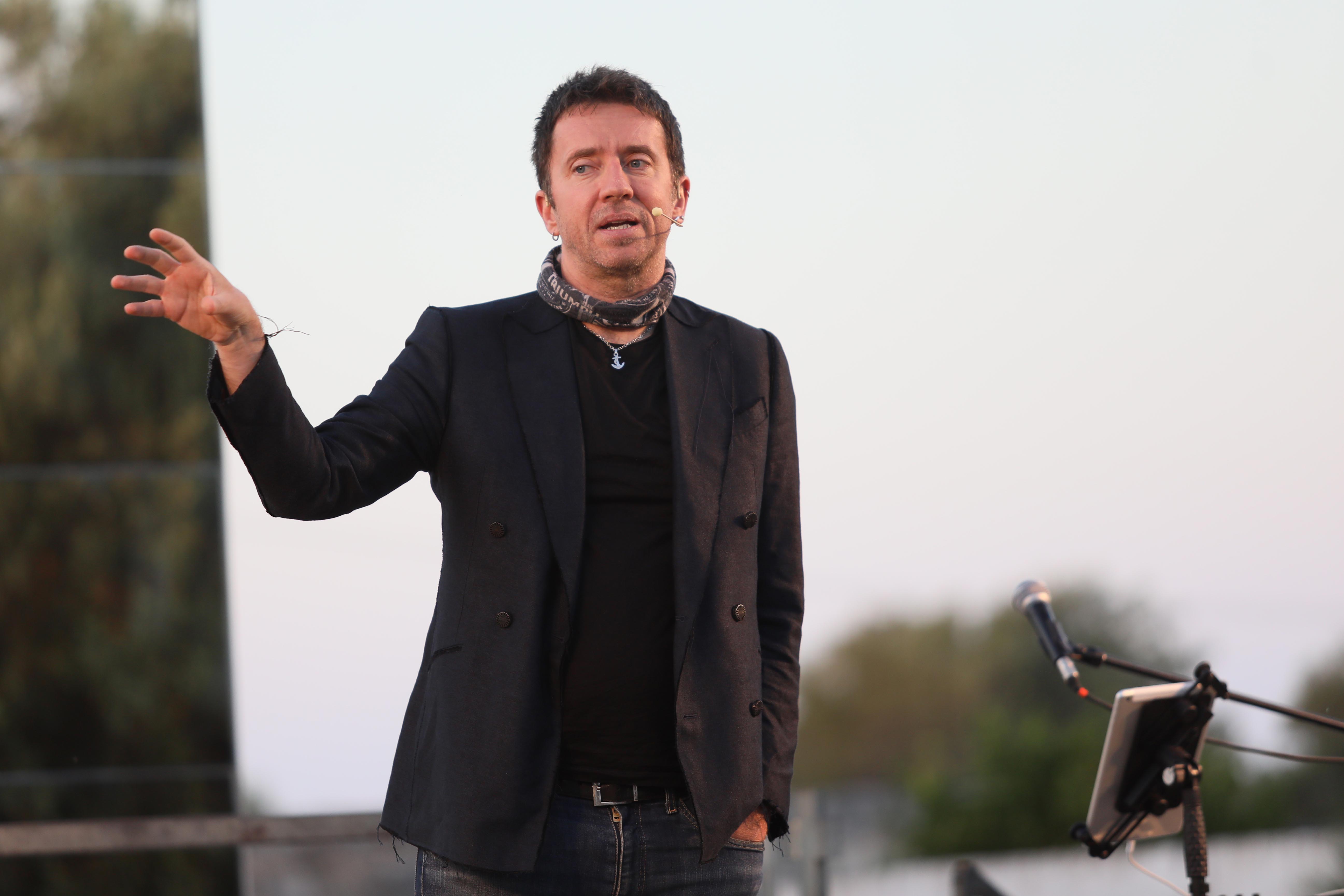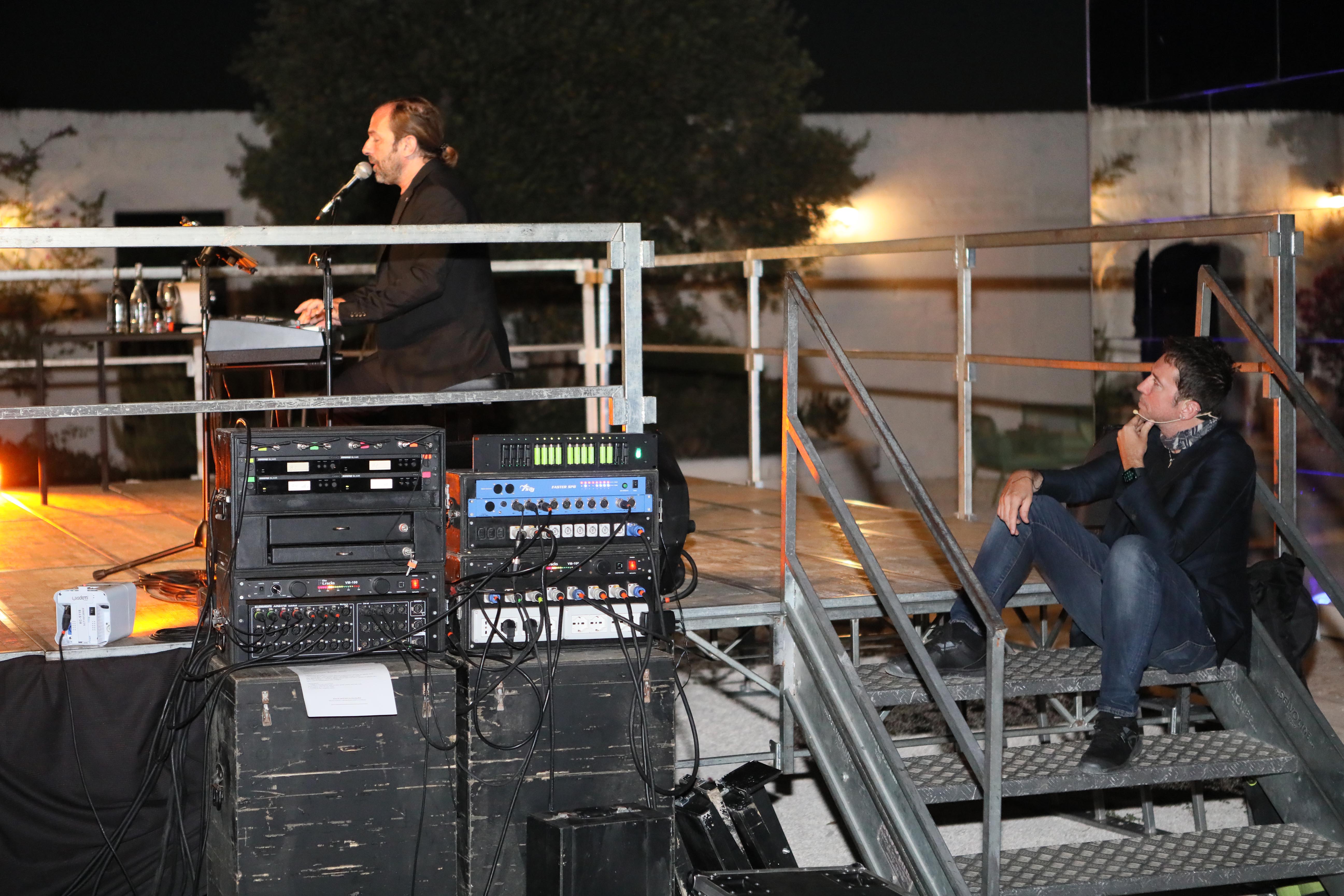Ad accompagnare Scanzi sul palco, allestito nel parco della suggestiva Masseria San Giovanni, il cantante e musicista pescarese Gianluca Di Febo, frontman dei Terzacorsia.