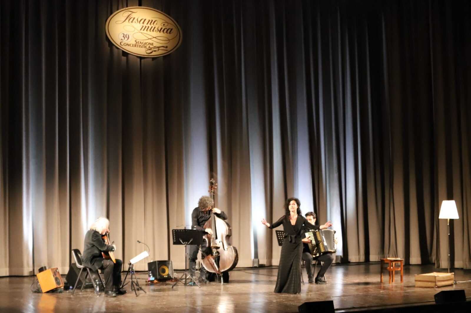Un progetto nato da un felice incontro: quello tra la suggestiva voce di Serena Spedicato, qui anche intensa voce narrante, la bella penna di Osvaldo Piliego e il talento di Vince Abbracciante, autore dei particolarissimi arrangiamenti che hanno regalato un’anima nuova a melodie immortali. Ad accompagnare sul palco Spedicato e Abbracciante con la sua inseparabile fisarmonica, due sontuosi musicisti: Nando Di Modugno alla chitarra classica e Giorgio Vendola al contrabasso.