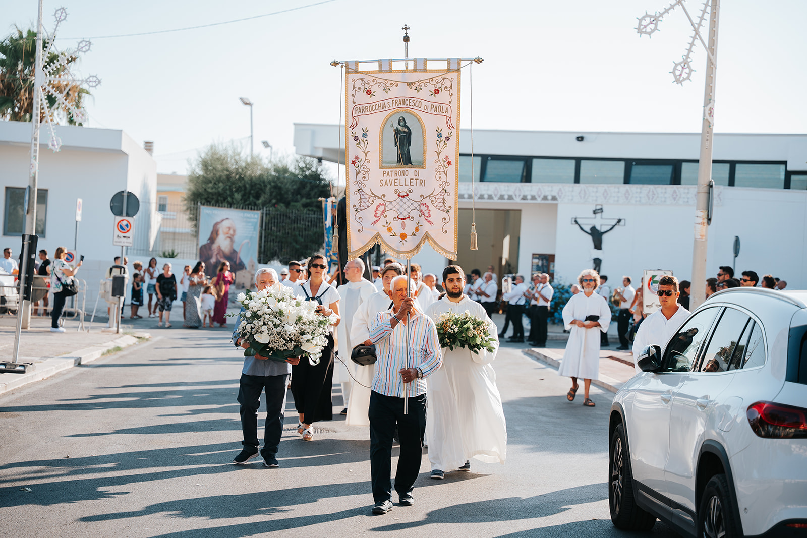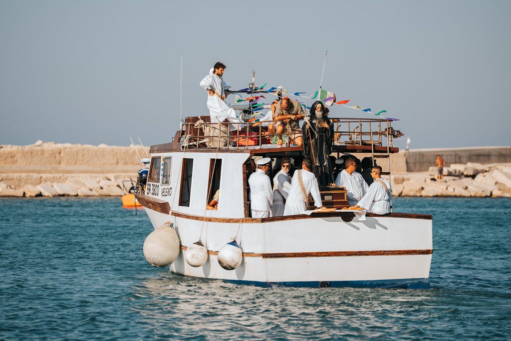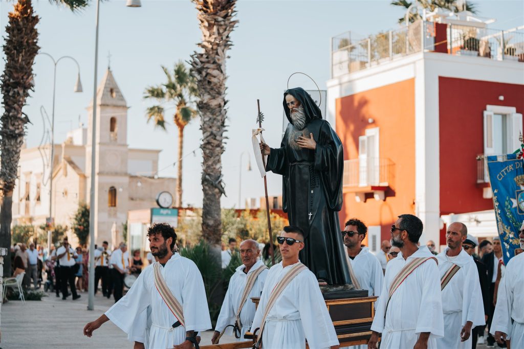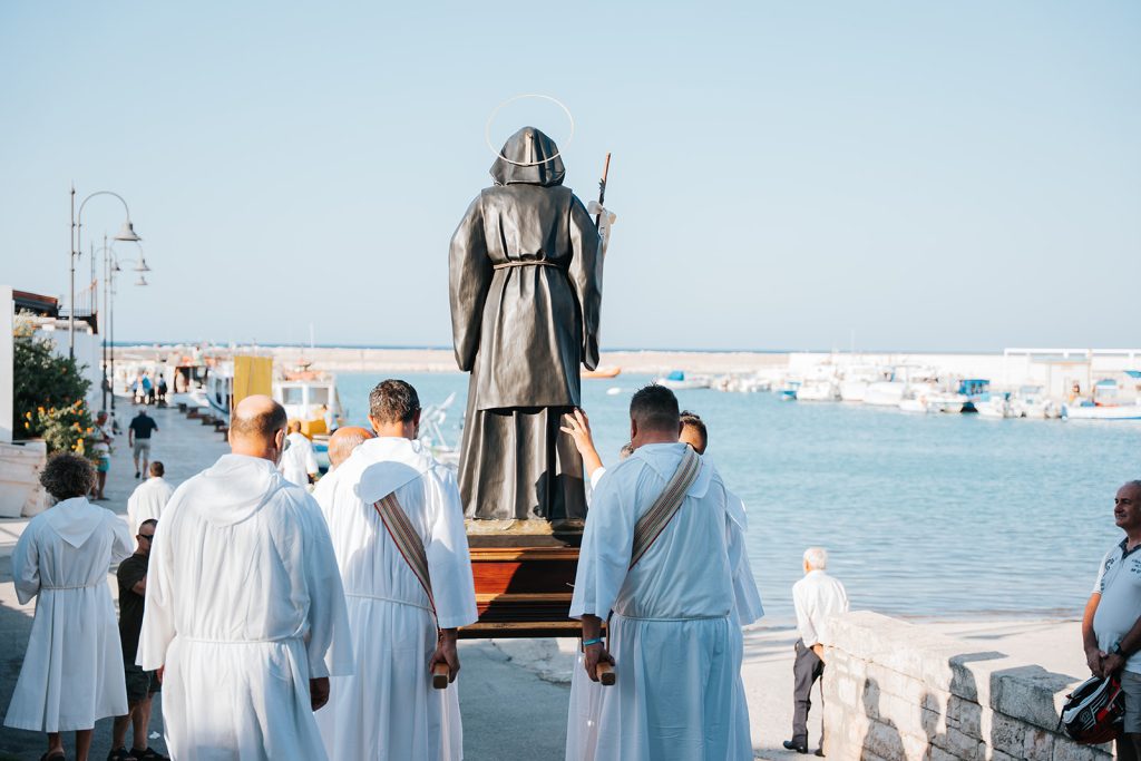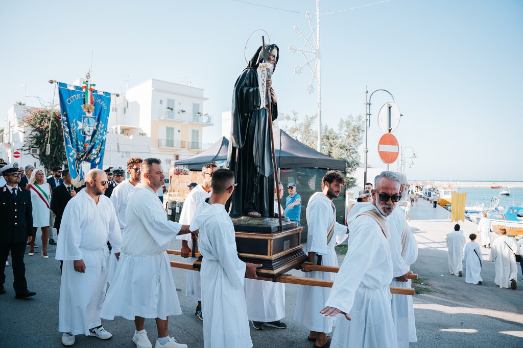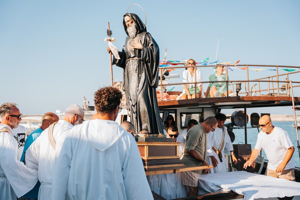 Ad aprire le celebrazioni è stata la suggestiva processione in mare di San Francesco da Paola, quest’anno limitata al porto di Savelletri a causa del mare mosso, con il corteo che ha solcato le acque, sulla scia dell’accompagnamento musicale della banda Fratelli Caramia di Locorotondo. Il corteo con l’effige del santo ha infine toccato Piazza Amati, con le numerose bancarelle a far da cornice.
