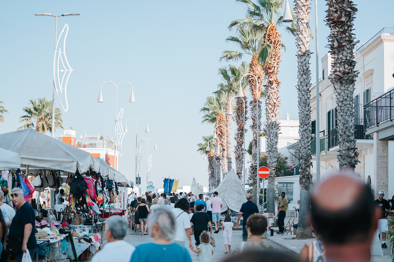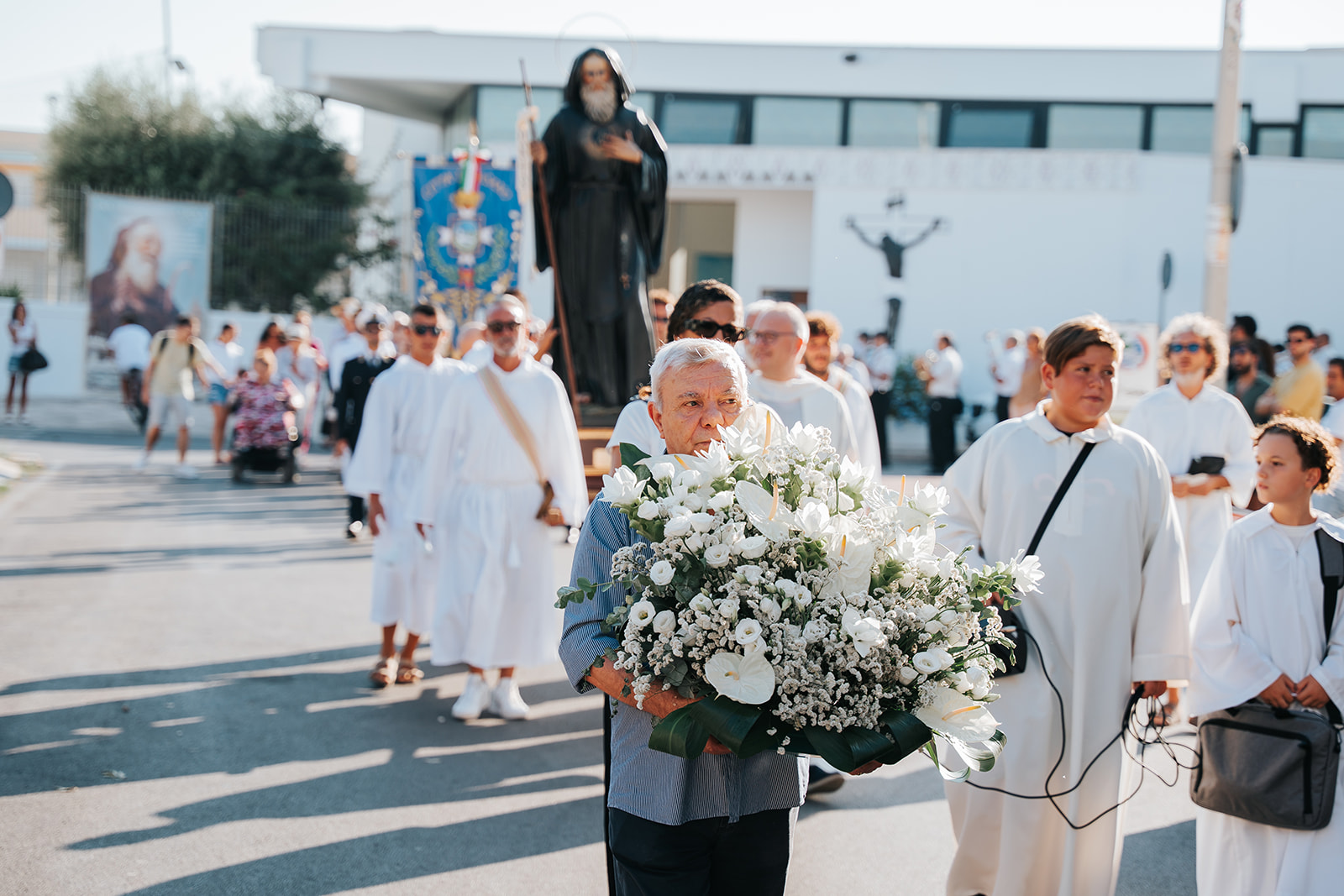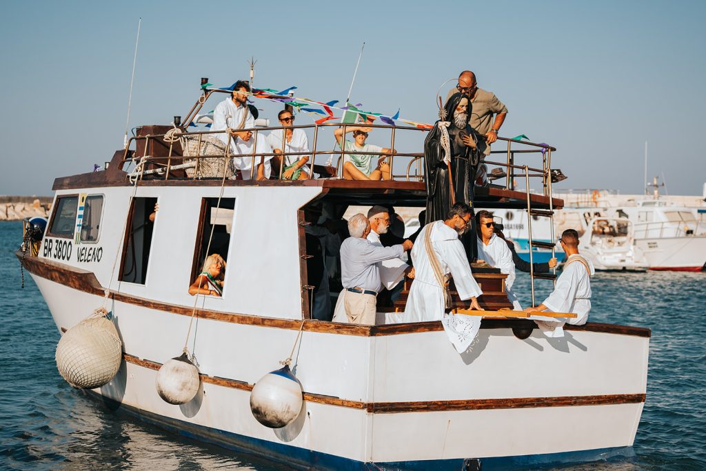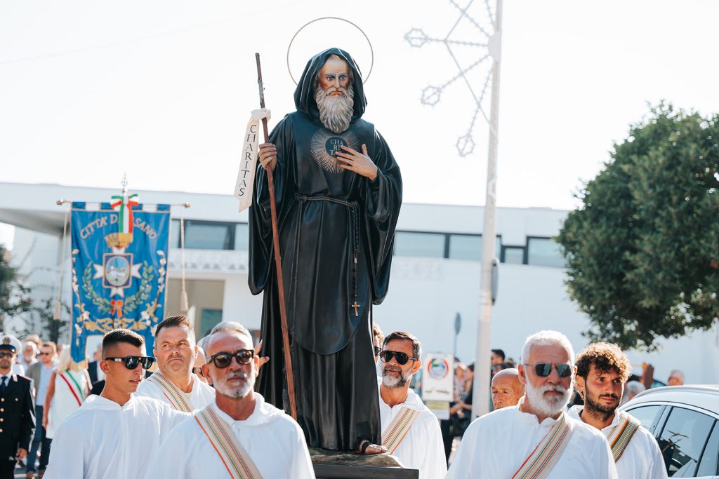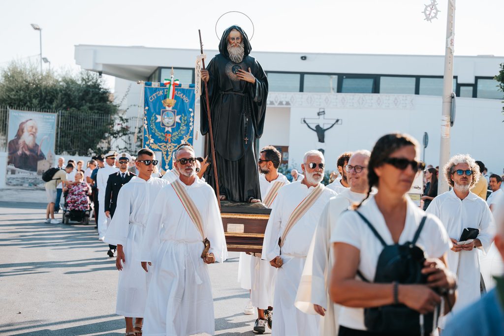 Ad aprire le celebrazioni è stata la suggestiva processione in mare di San Francesco da Paola, quest’anno limitata al porto di Savelletri a causa del mare mosso, con il corteo che ha solcato le acque, sulla scia dell’accompagnamento musicale della banda Fratelli Caramia di Locorotondo. Il corteo con l’effige del santo ha infine toccato Piazza Amati, con le numerose bancarelle a far da cornice.