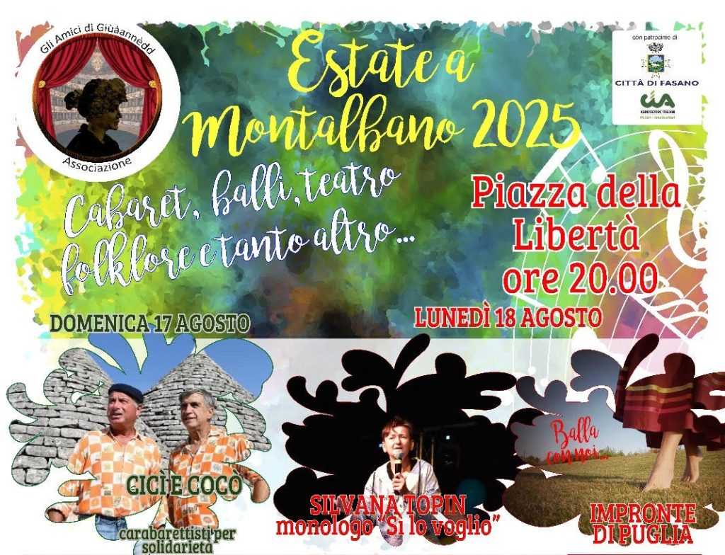 MONTALBANO – Prenderà il via domenica 17 agosto a Montalbano il programma di manifestazioni estive dal titolo “Estate a Montalbano 2025”, messo a punto dalla Associazione teatrale amatoriale in vernacolo e non “Gli amici di Giuuaanneed”, presieduta da Mina Schiavone.