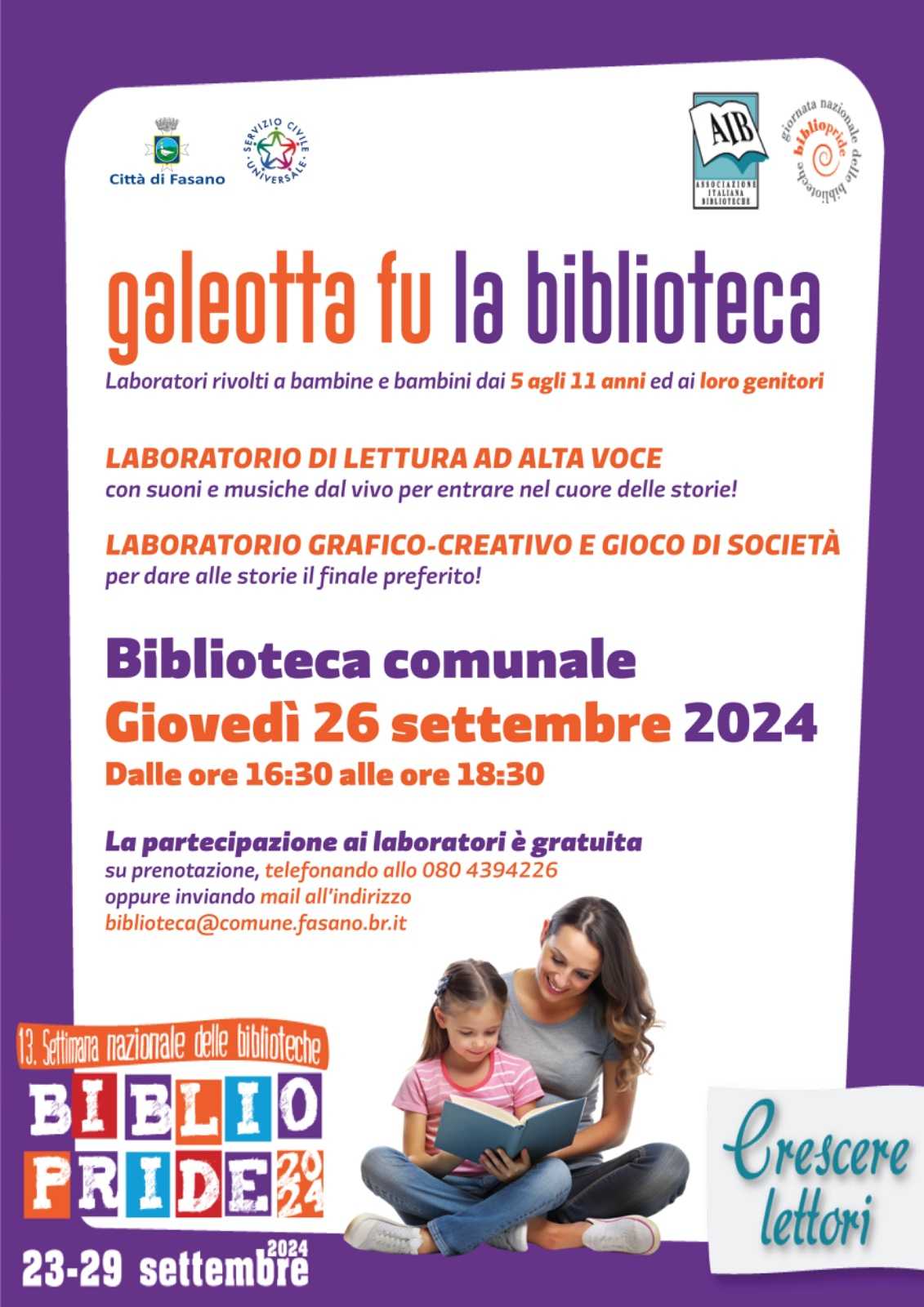 FASANO – Dal 23 al 29 settembre si svolgerà in tutta Italia il Bibliopride, la settimana nazionale delle biblioteche.