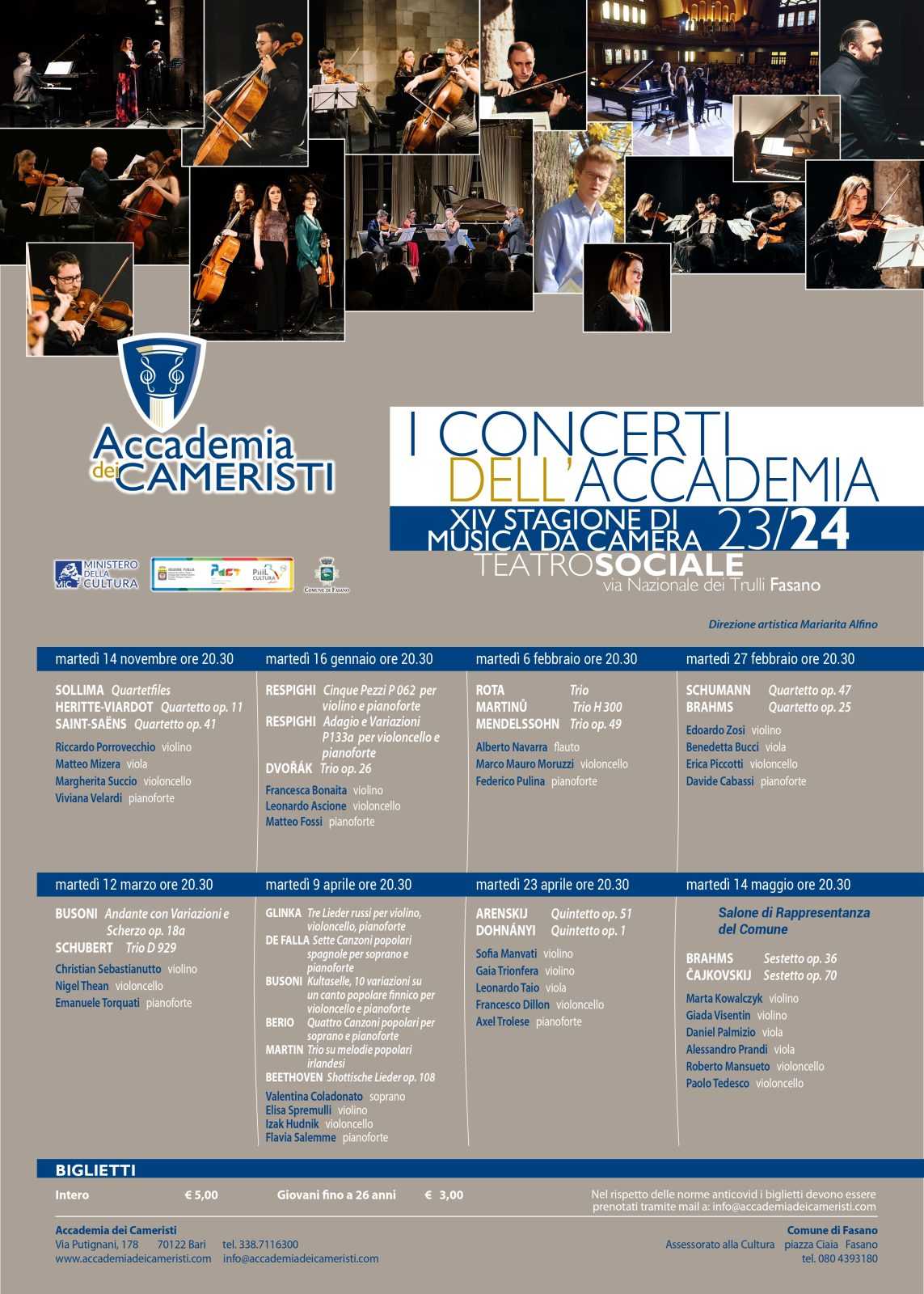 FASANO – Si rinnova anche quest’anno l’imperdibile appuntamento con la Stagione di Musica da Camera, curata dall’Accademia dei Cameristi di Bari con il supporto del Comune di Fasano.