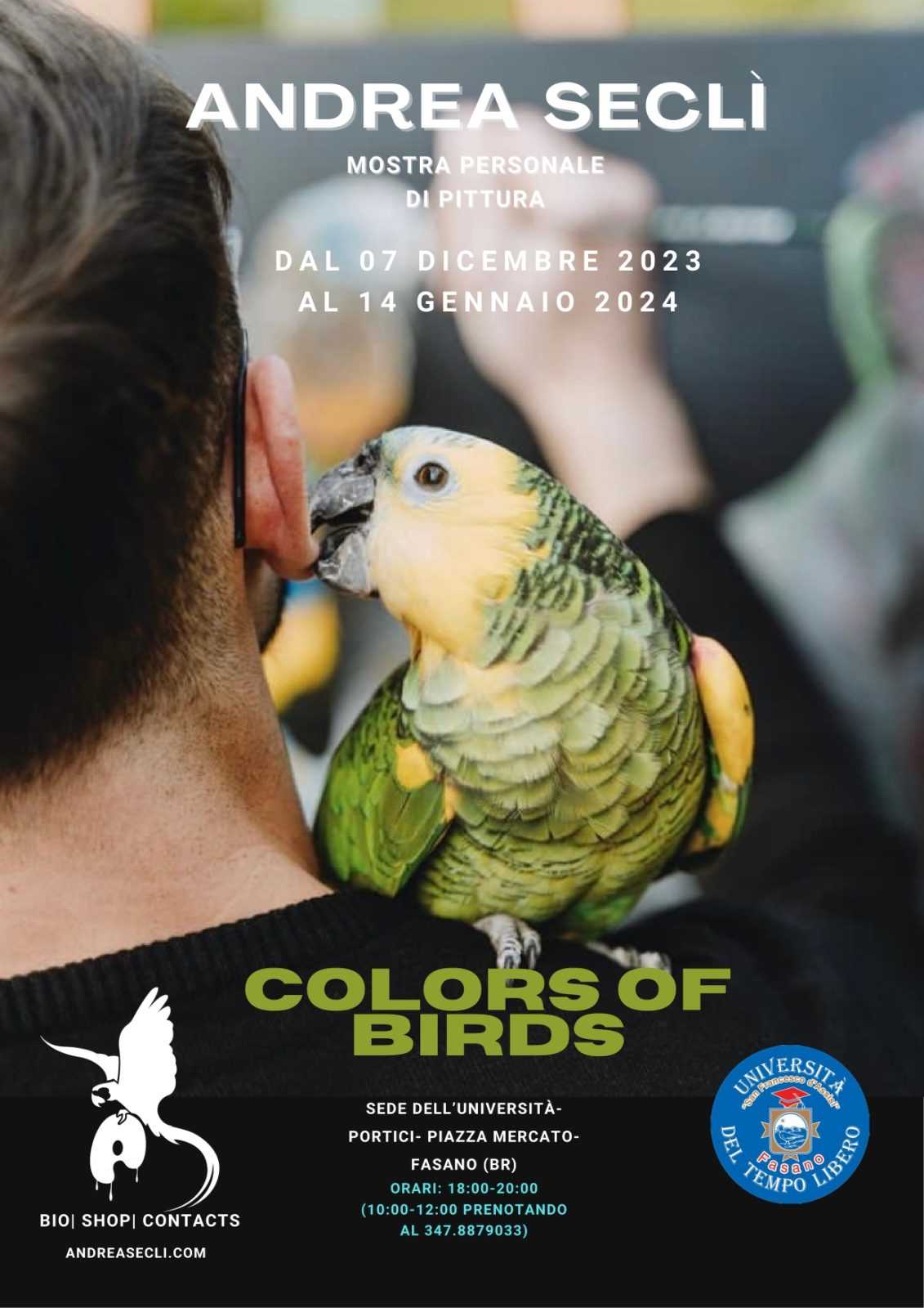 A lui l’UTL dedicherà un Giovedì culturale il prossimo 11 gennaio 2024. Relatore sarà Zino Mastro, direttore del mensile fasanese “Osservatorio”. Andrea Seclì è l’artista degli animali, che dipinge con maestria e leggerezza. Nasce nel 1995 a Parabita, piccolo comune del Salento, trascorre gli anni della sua infanzia e dell’adolescenza nella sua casa, immersa nei colori della suggestiva campagna salentina. Nel 2014 consegue il diploma di Maturità Artistica, sebbene preferisca definirsi sopratutto un autodidatta, coltivando contemporaneamente una innata predisposizione per l’addestramento di pappagalli e rapaci presenti nell’allevamento di famiglia.