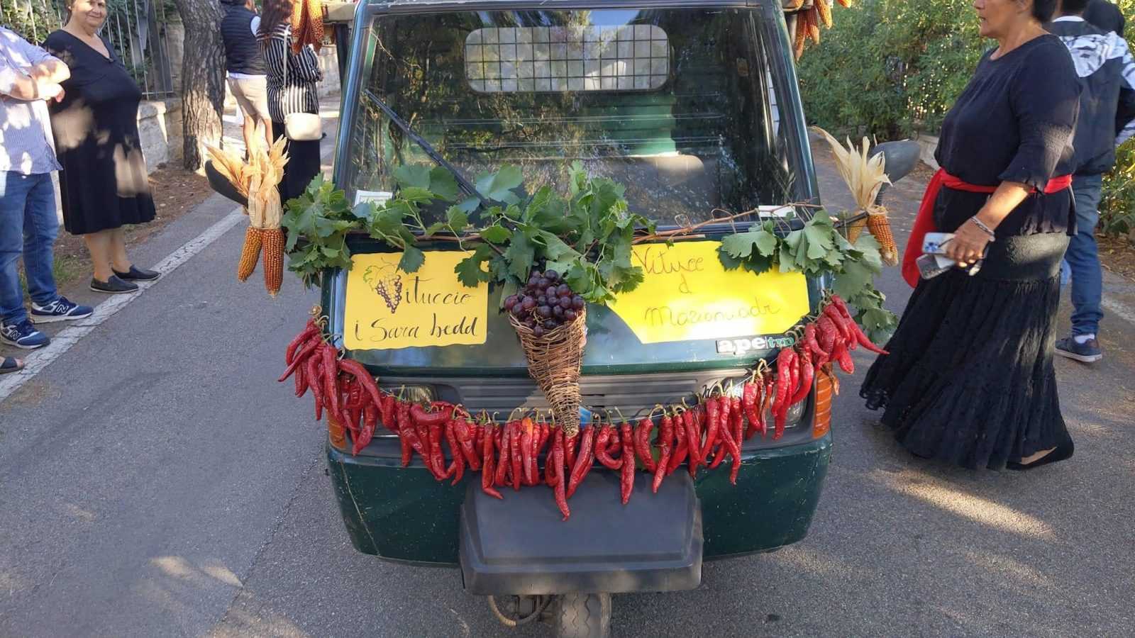 In Viale Toledo una sfilata di carri, addobbati a festa con rimandi alla vendemmia e cesti di uva locale, accompagnati dai ritmi dei tamburini del Giugno Fasanese, ha annunciato l’apertura della stagione di vendemmia, che segue a un’estate particolarmente calda.